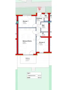 Top 7: Belagsfertige Eigentumswohnung im Obergeschoß mit ca. 69m² Wfl., eingeteilt in:
