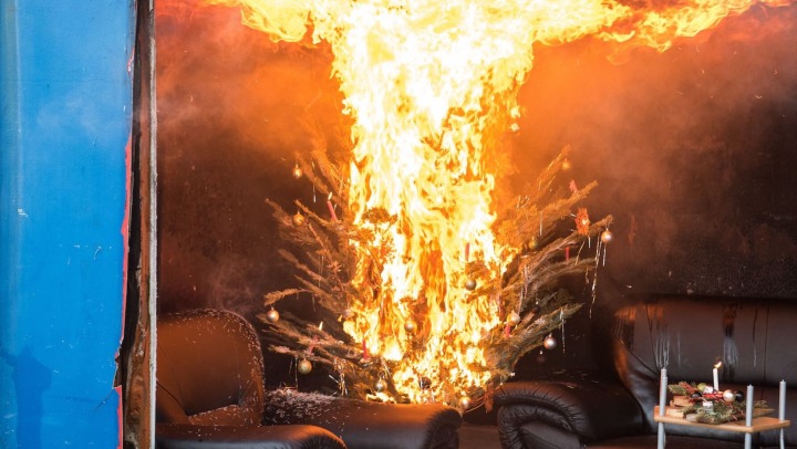 Ein Weihnachtsbaum steht in zehn Sekunden lichterloh in Flammen. Um die Brandgefahr zu verringern,…