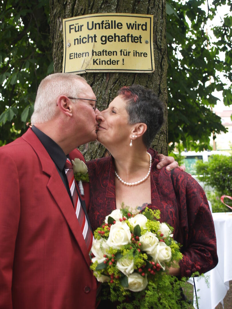 Wir haben uns im 2. Frühling gefunden und am 5.6.2009 "JA" zu uns gesagt. Dieses Schild ober uns fanden wir "passend", da meine Mutter anwesend war.