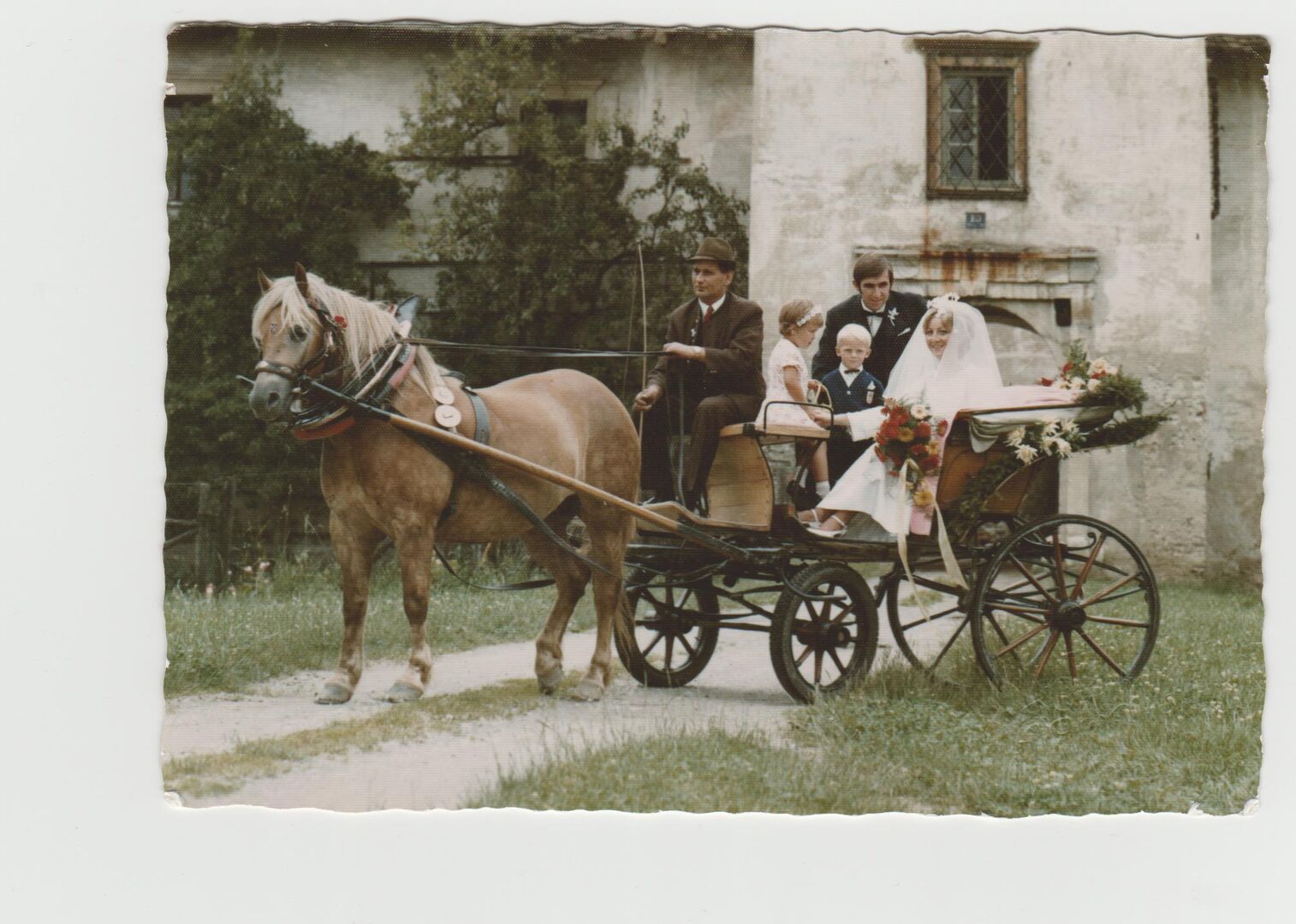 Gisela u. Valentin KARL heirateten ganz romantisch mit Kutsche am 15.Juli 1972 in St. Peter b.Taggenbrunn.