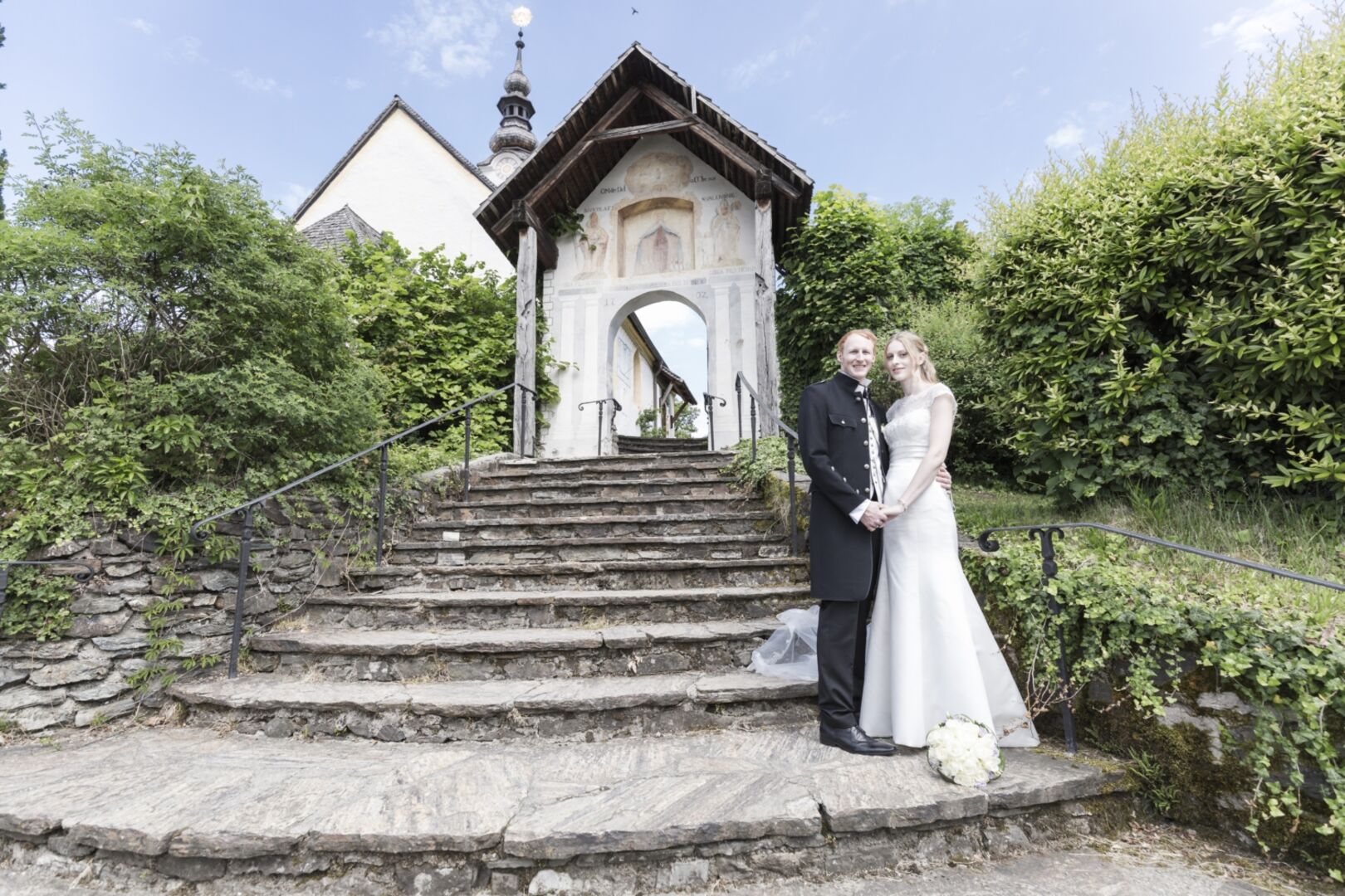 Christina und Jürgen Mertlitz, 1. August 2015 in einer idyllischen Bergkirche in Moosburg.