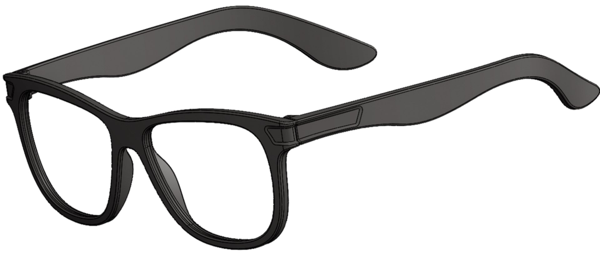 Dabei mussten in mehreren Simulationsschleifen Optimierungen an der Sonnenbrille durchgeführt werden. Neben den grundlegenden Funktionen, sei es das Scharnier oder die Glasbefestigung, wurde hier auch bewusst auf reduzierten Materialeinsatz geachtet.