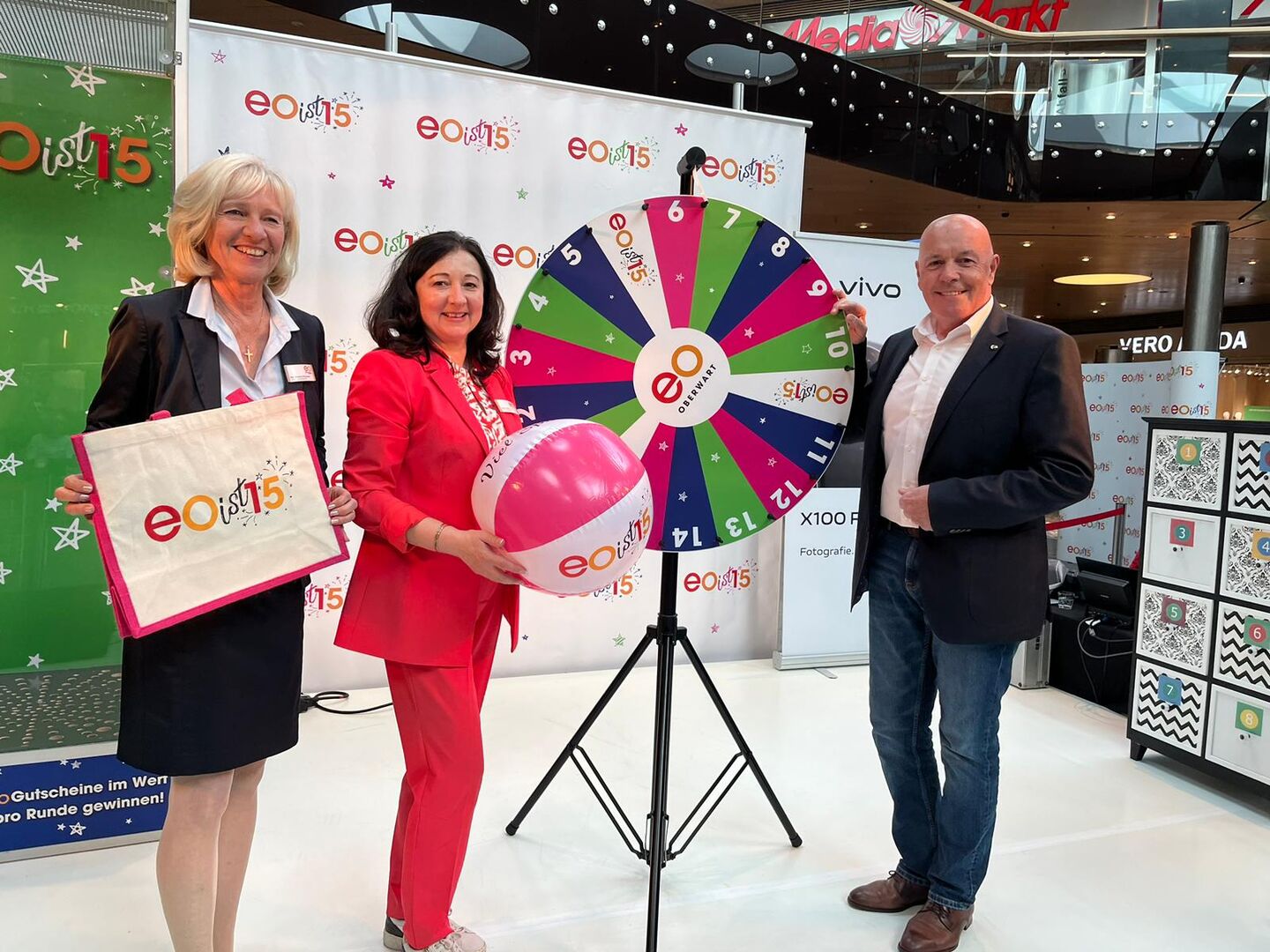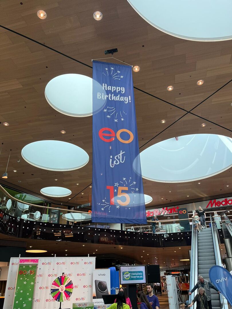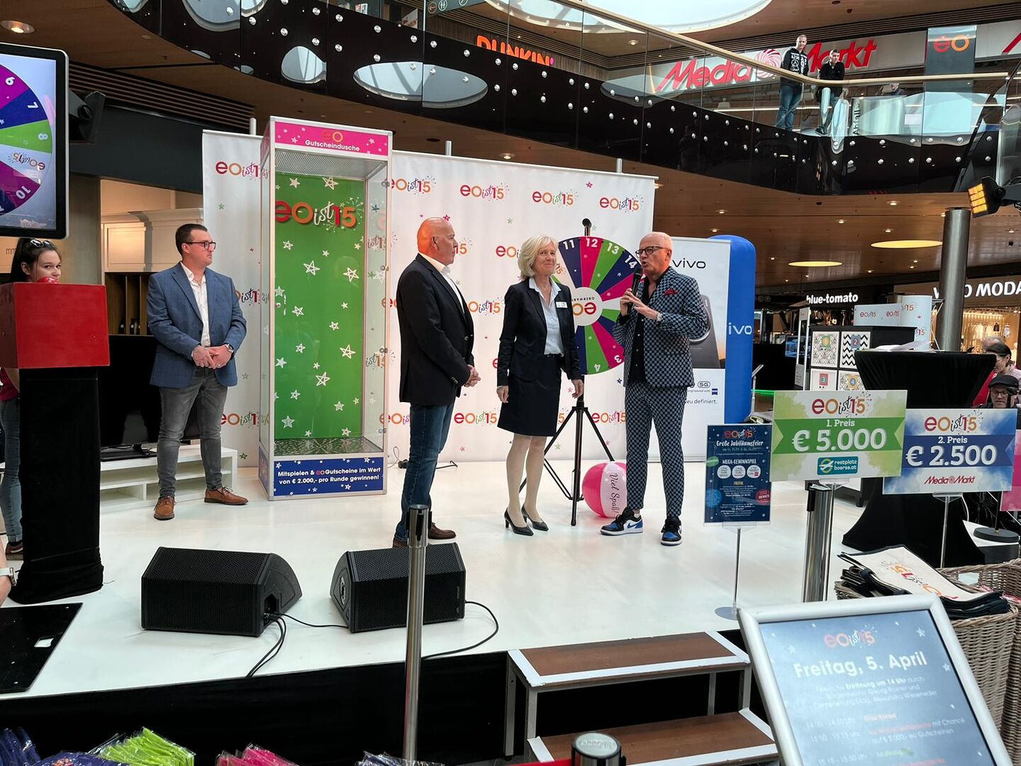Wenn das eo feiert, dann richtig! Anlässlich der 15 Jahr-Jubiläumsfeier, wurde den Gästen zwei Tage lang ein wirklich tolles Programm geboten. Bunte Bühnenshows und ein Gewinnspiel der Extraklasse gehörten da ebenso dazu wie Top-Angebote in den Shops.