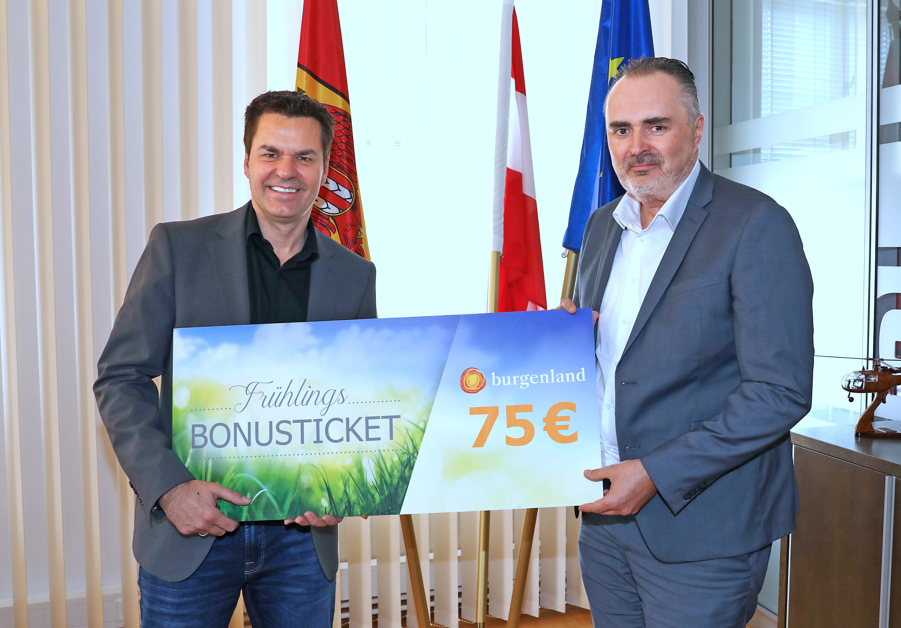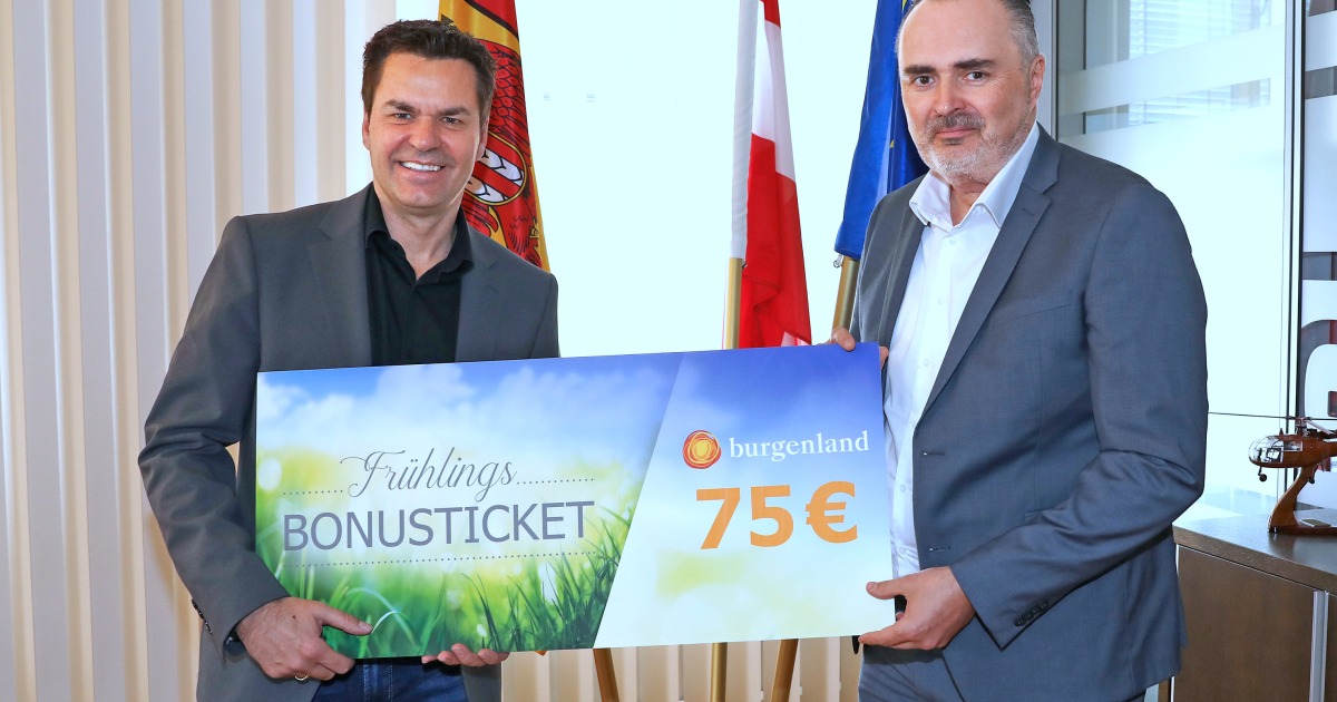 Das Burgenland stärkt seinen Tourismus weiter: Mit dem Frühlings-Bonusticket werden Gästen 75 Euro gutgeschrieben, die bis Ende Juni mindestens drei Nächte in einem burgenländischen Beherbergungsbetrieb verbringen. Landeshauptmann und Tourismusreferent Hans Peter Doskozil sieht - gemeinsam mit Burgenland Tourismus-Geschäftsführer Didi Tunkel - im Paket „Bonusticket und Corona-Kasko“ die bestmöglichen Voraussetzungen, um im Zuge der Wiederöffnung der Hotellerie vor allem inländische Gäste ins Burgenland zu holen.