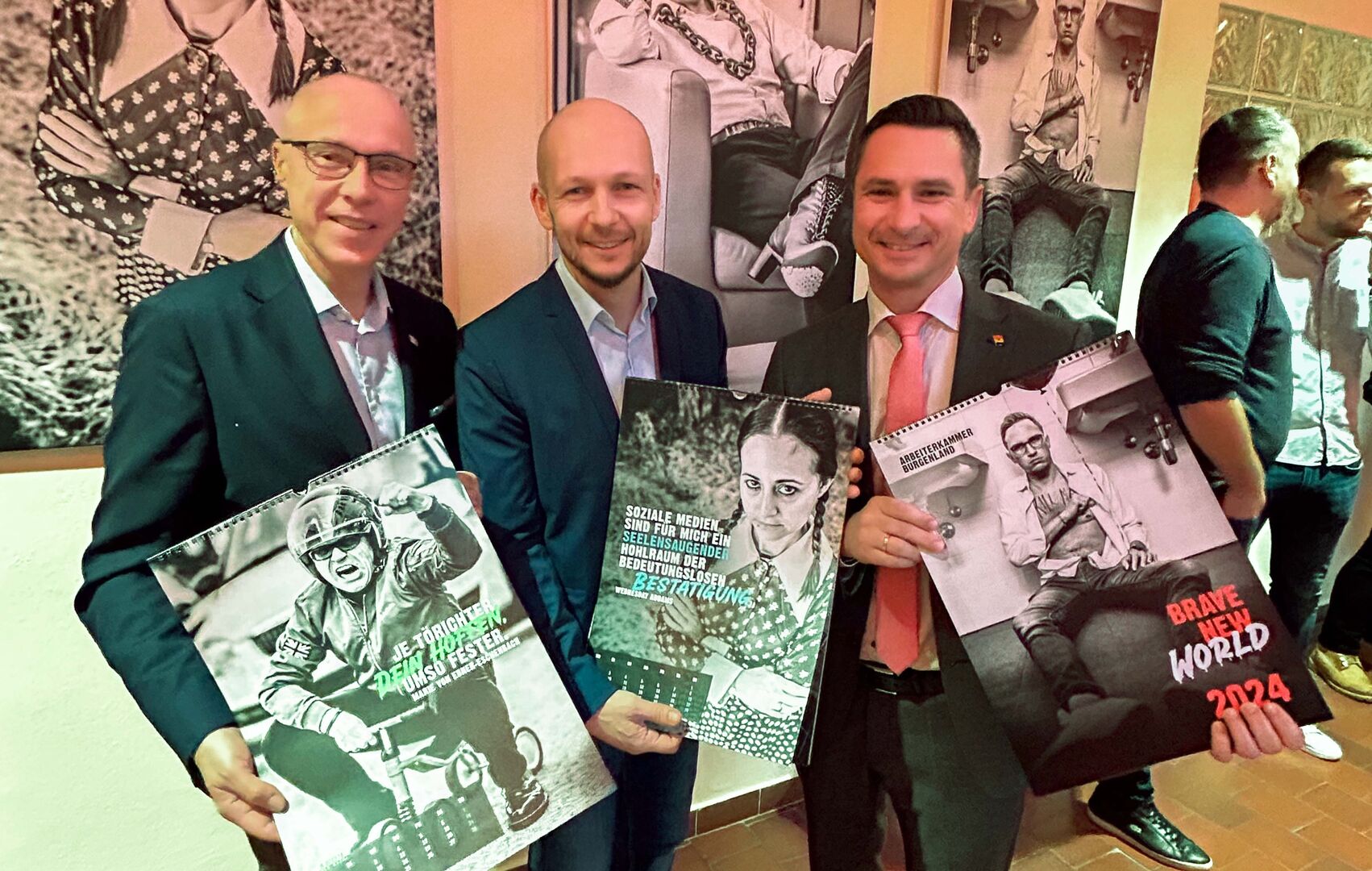 BRAVE NEW WORLD ist das Thema des AK Kunstkalenders für das Jahr 2024. Die beiden Fotografen Roman Felder und Roman Huditsch setzen sich dabei ironisch und kritisch mit der schönen neuen Welt auseinander. Entstanden sind zwölf provokante und zugleich überaus beeindruckende Bilder. Auf Einladung von LT-Präsident Robert Hergovich wurde der neue AK Kunstkalender nun im Landhaus präsentiert und eine Vernissage mit Werken der beiden Fotokünstler eröffnet. „Im Sinne unserer Demokratie ist es mir sehr wichtig, dass sich der Burgenländische Landtag weiter öffnet, auch Kunst und Kultur spielen dabei eine wesentliche Rolle“, so der Landtagspräsident.