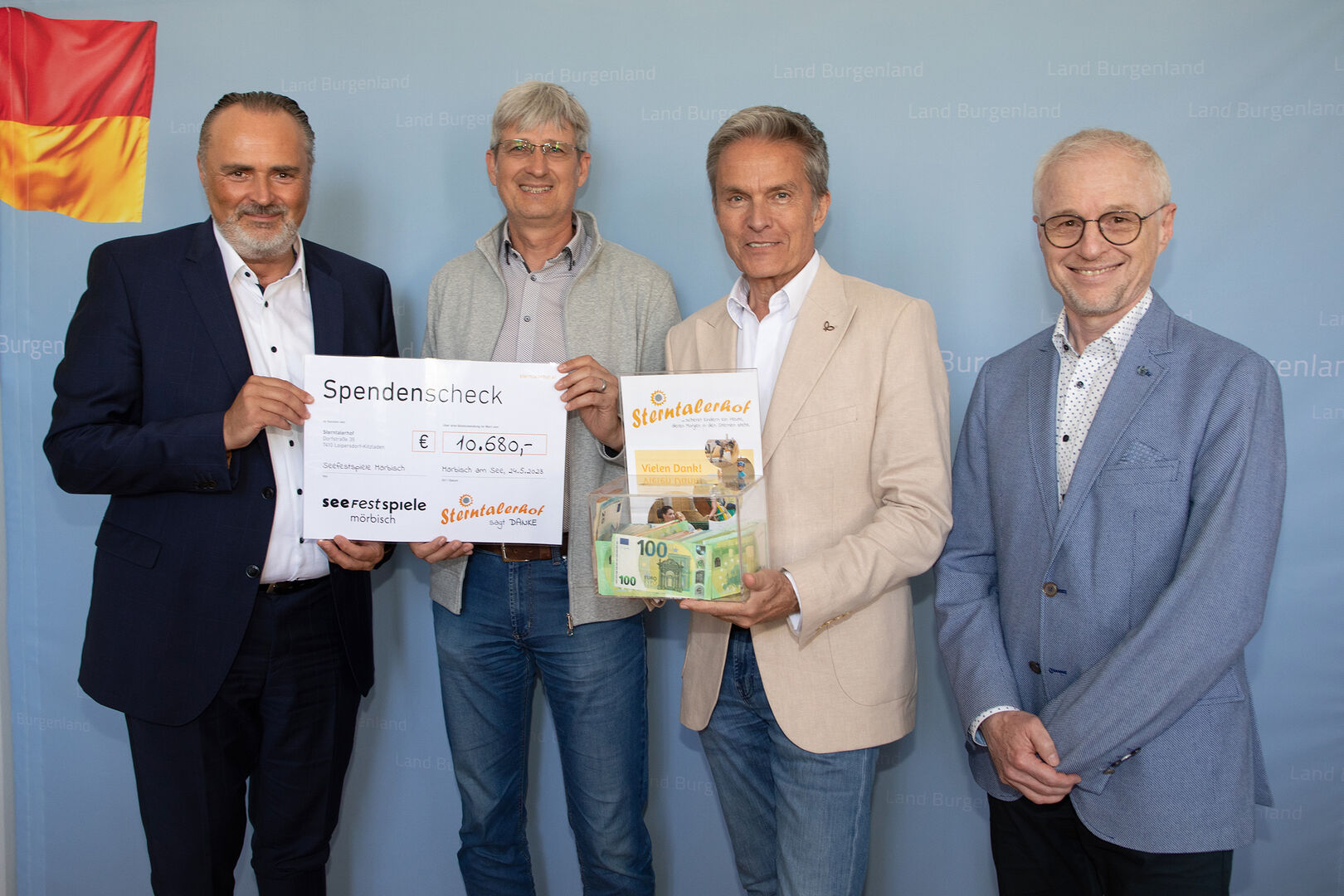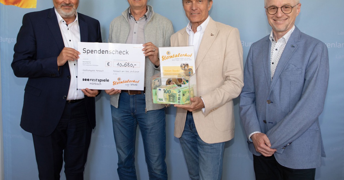 Am 14. und 15. April 2023 fand am Festspielgelände der Seefestspiele Mörbisch ein einzigartiger Kostümflohmarkt statt, der sich regen Zuspruchs erfreute und auch einen erheblichen Betrag von 10.680 Euro für den Sterntalerhof sammelte. Die Veranstaltung bot eine einzigartige Gelegenheit, in die Welt des Theaters und der Fantasie einzutauchen. Der Spendenerlös wurde nun von Landeshauptmann und Kulturreferent Hans Peter Doskozil, Generalintendant Alfons Haider und Festspieldirektor Dietmar Posteiner an den Geschäftsführer des Sterntalerhofs Harald Jankovits übergeben.