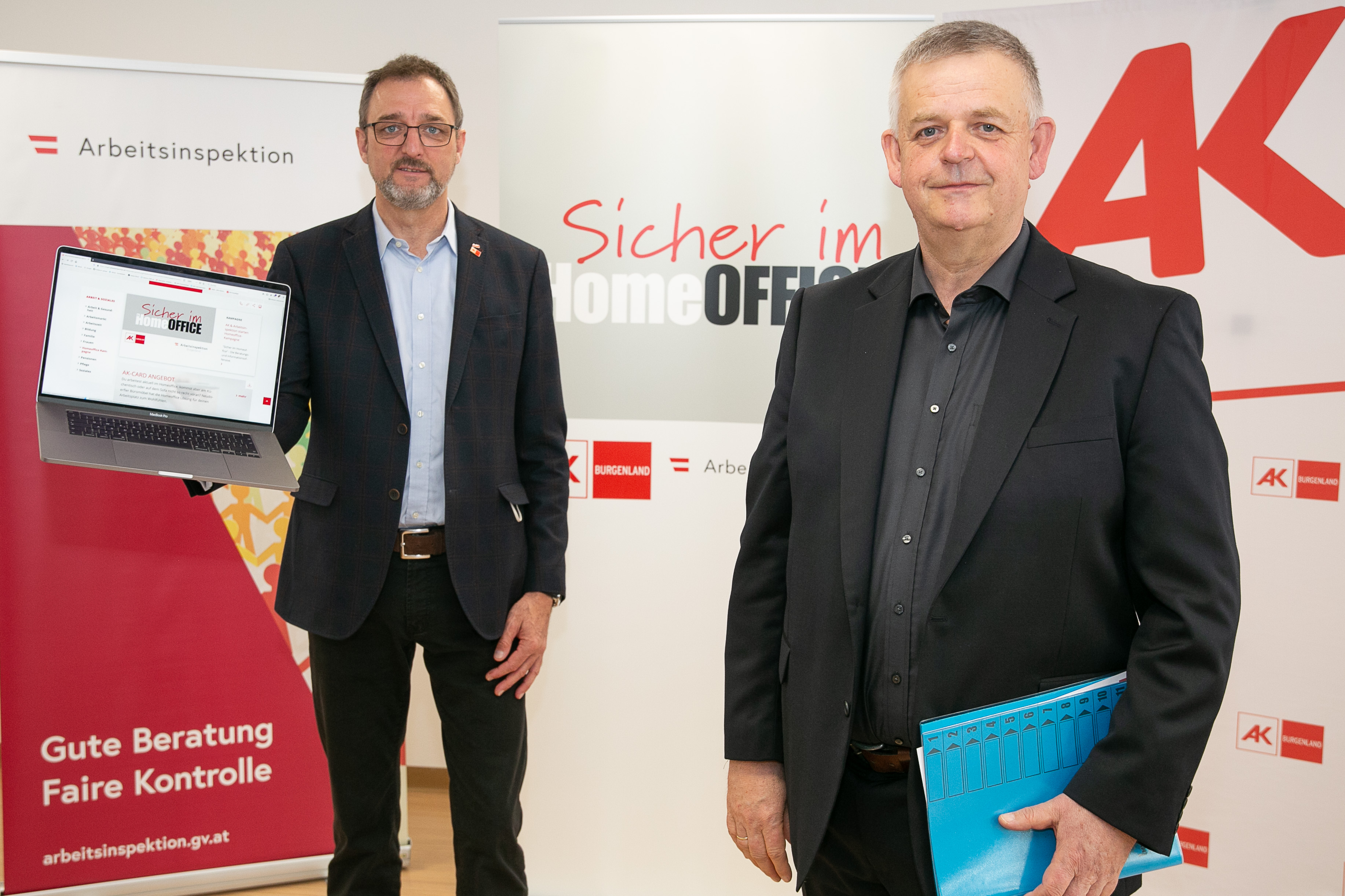 Arbeiten zuhause hat Vor- aber auch Nachteile. Damit die burgenländischen Arbeitnehmer „Sicher im Homeoffice“ arbeiten können, bündeln die Arbeiterkammer Burgenland und die Arbeitsinspektion Burgenland ihr Beratungs- und Informationsangebot. Neben der klassischen Beratung werden auch Webinare zu relevanten Themen und Videoberatungen via WhatsApp angeboten. „Wir haben ein Beratungs- und Informationspaket geschnürt, das eine umfassende Beratung zum Homeoffice garantiert“, versichern AK-Präsident Gerhard Michalitsch und Arbeitsinspektions-Amtsleiter Günter Schinkovits.