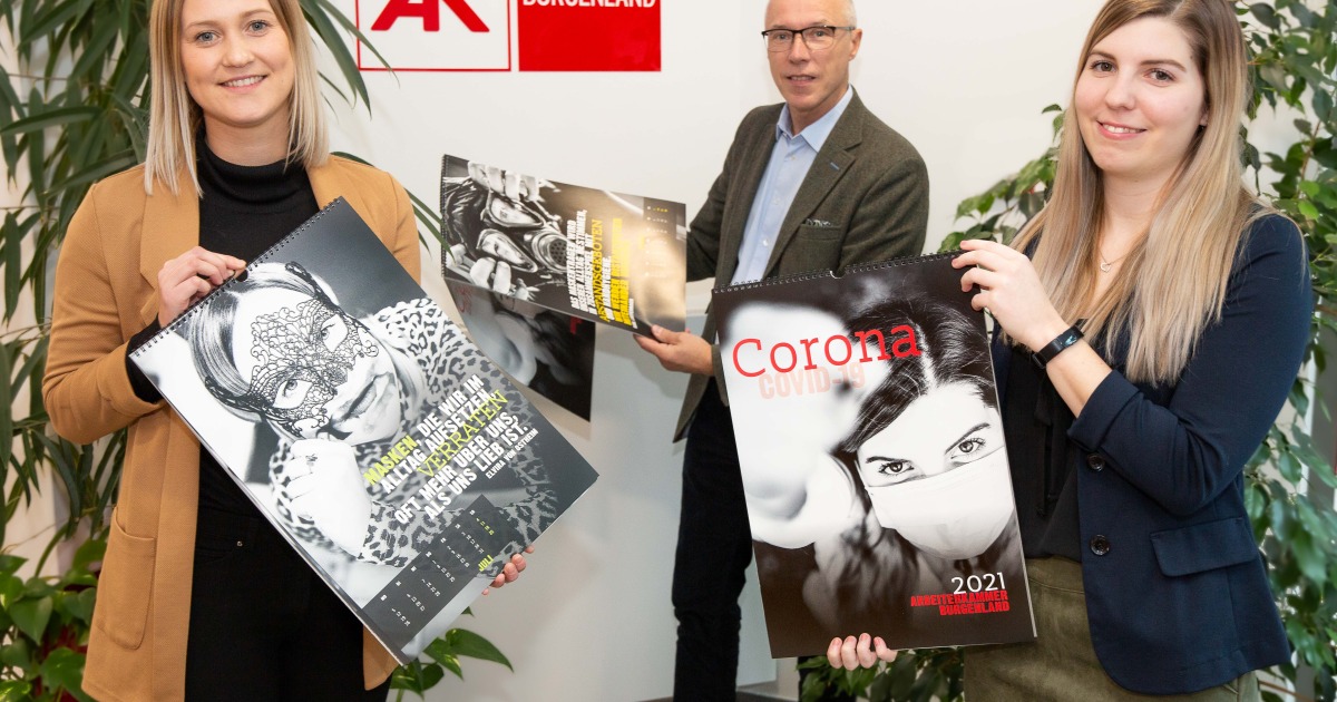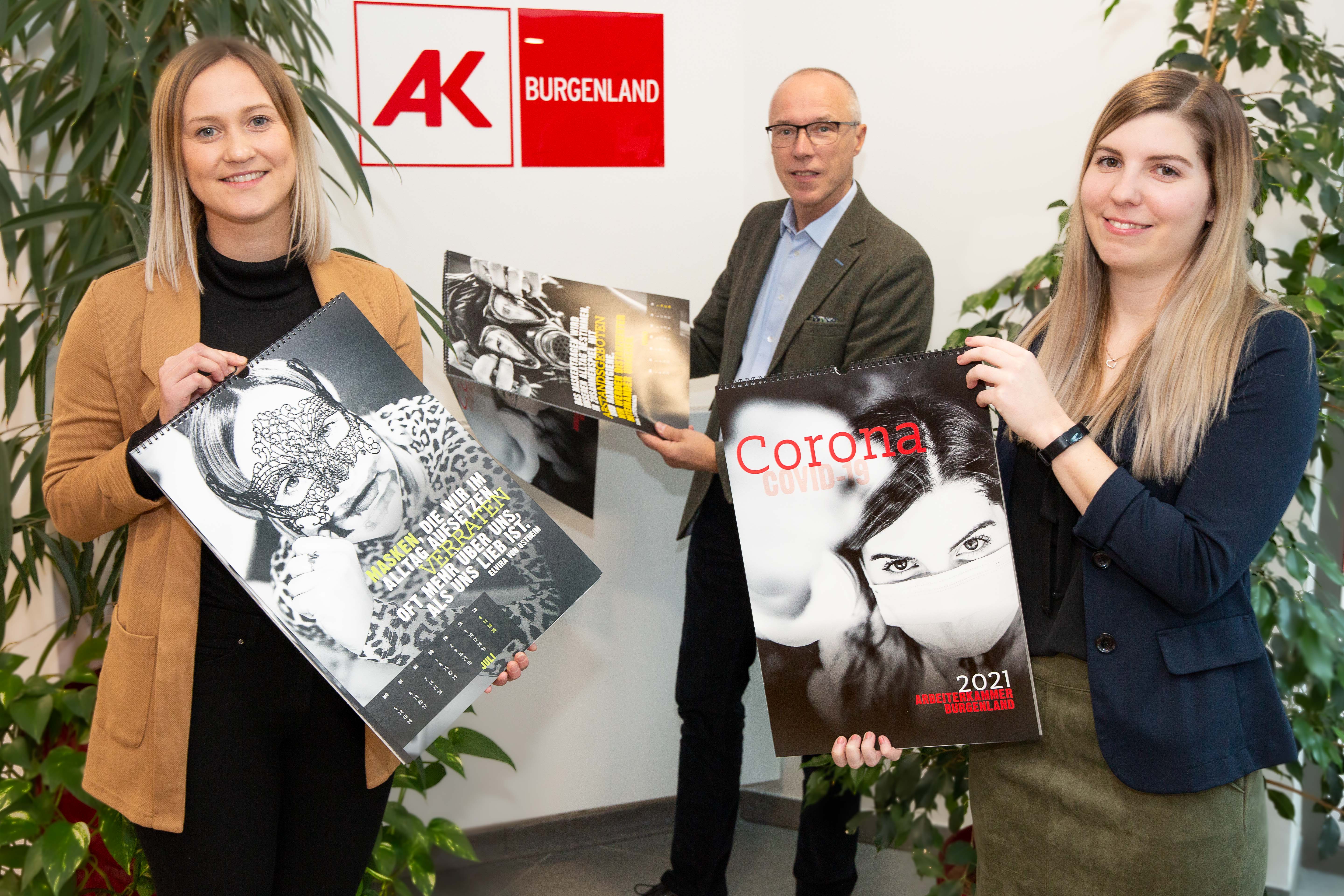 Die Ausgabe 2021 des mehrfach ausgezeichneten AK-Kunstkalenders ist frisch aus der Druckerei in der Arbeiterkammer eingelangt. Das Besondere daran: Sowohl die Fotografen als auch die Models kommen aus der AK. Das Thema für dieses Jahr? Natürlich Corona in all seinen Facetten. Wer die Kalender aus den Vorjahren kennt, weiß, was ihn erwartet: eine Interpretation des Themas in gewohnter provokanter Weise. „Die Fotografen Roman Felder und Roman Huditsch haben einen Kalender mit künstlerischem Anspruch geschaffen. Die Fotos sind fordernd und voll Ironie – und das ist gut so, gratuliere!“, zeigte sich AK-Chef Mag. Thomas Lehner begeistert.
