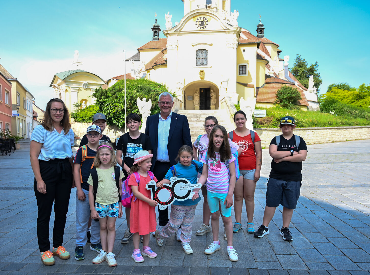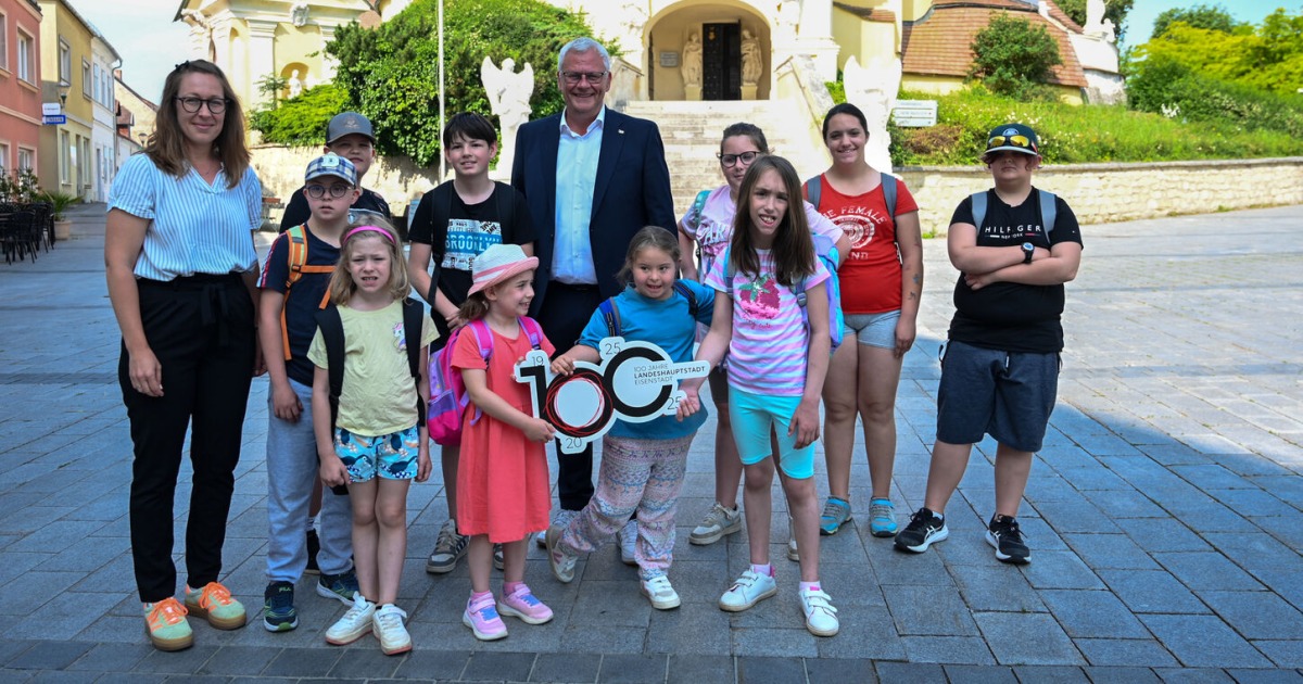 Neben zahlreichen öffentlichen Veranstaltungen geht das Jubiläum aber auch direkt in die Eisenstädter Schulen: Mit der kindgerechten Stadtführung „Komm mit durch Eisenstadt!“ lernen Schülerinnen und Schüler aus den Volksschulen sowie der ASO ihre Heimatstadt auf spannende und altersgerechte Weise kennen. Zahlreiche Termine wurden bereits erfolgreich umgesetzt – zuletzt mit der Allgemeinen Sonderschule (ASO) Eisenstadt, die ihre Führung vor der Haydnkirche startete. Stadtführerin Tina Lackner nahm die Kinder mit auf eine historische Entdeckungsreise durch Eisenstadts bekannteste Viertel und Gebäude.