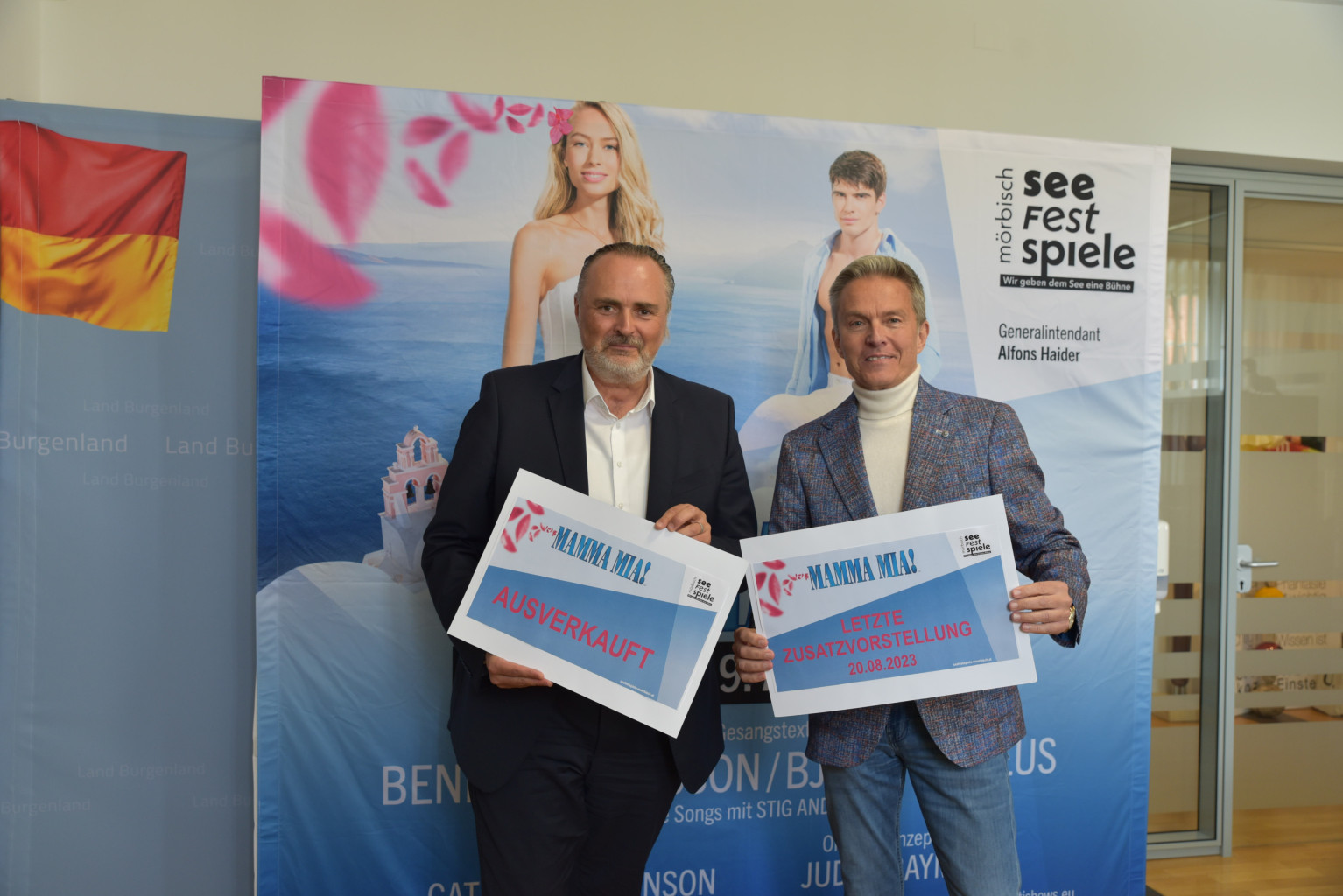 Generalintendant Alfons Haider ergänzt: „Wir haben in den letzten Wochen alles dafür getan, um so viele Vorstellungen wie möglich, anbieten zu können. Leider ist jetzt mit insgesamt 27 Terminen unser Plafond erreicht. Dieser Ansturm ist ein riesiger Vertrauensvorschuss unseres Publikums, und wir werden unseren Gästen mit MAMMA MIA! das Erlebnis Mörbisch unvergesslich gestalten. Natürlich ist die Popularität des Stücks ausschlaggebend für diese Situation. Aber schon im letzten Jahr hat „Der König und ich“ die Menschen begeistert und gezeigt, was mit Musical auf dieser Bühne möglich ist.“