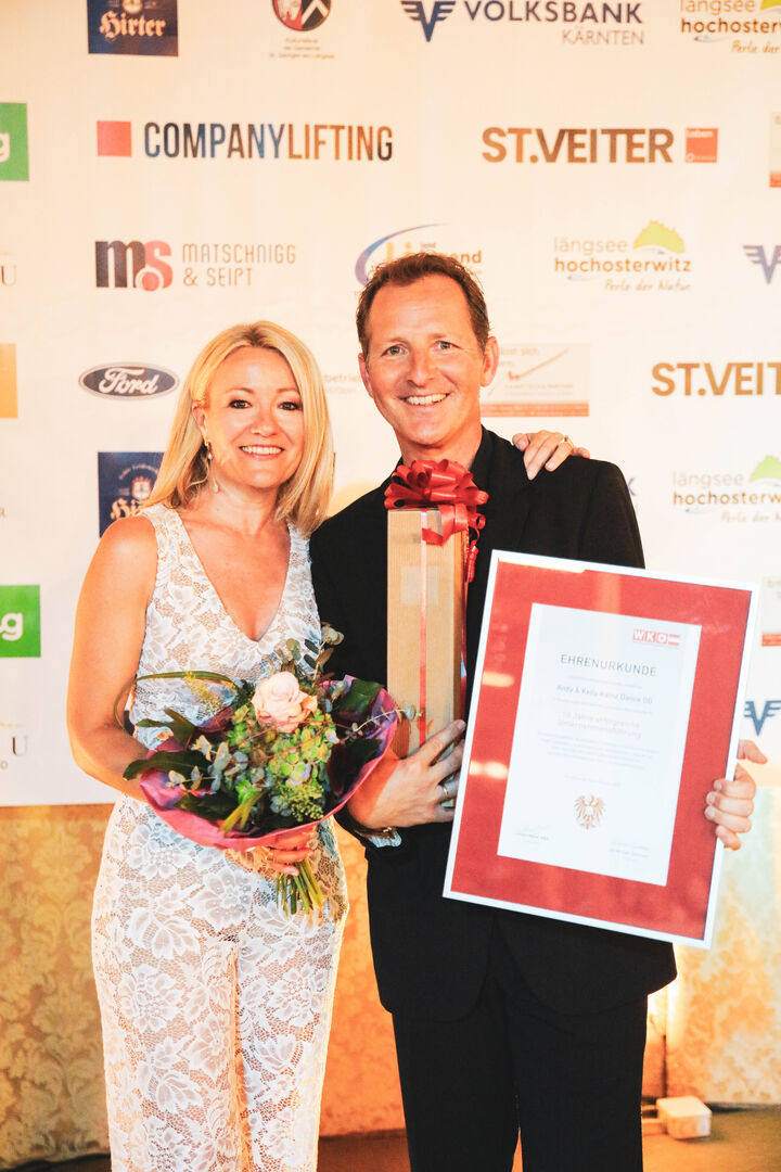 Mit zweijähriger Verspätung veranstalteten die Dancing Stars Andy und Kelly Kainz ihren 10. Sommernachtsball auf dem Brunnerhof bei Hochosterwitz. Gleichzeitig wurde auch das zehnjährige Jubiläum der School of Dance nachgefeiert. Vom Neo-Chef der Wirtschaftskammer St. Veit, Robert Schratt, wurde den beiden begeisterten Tänzern eine Urkunde verliehen. Dabei sahnten sie jede Menge Lob ab – für deren Innovationsgeist, die Professionalität und den unermüdlichen Einsatz.