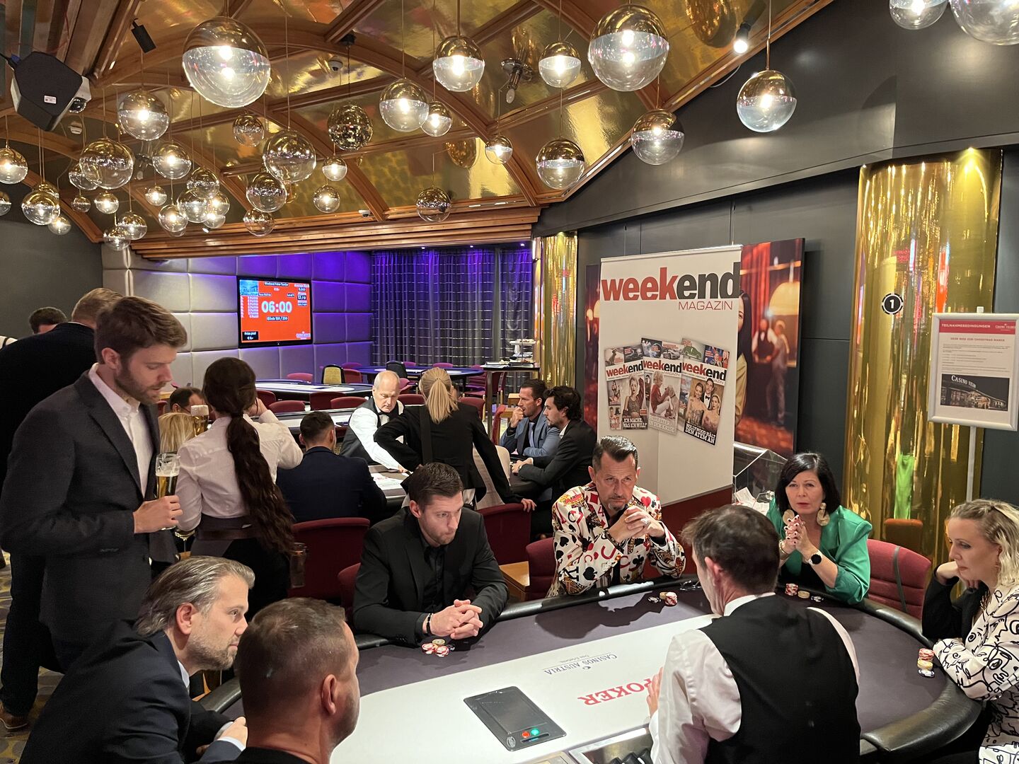 Bereits zum zwölften Mal ging im exklusiven Ambiente des Casinos Velden die Pokernight des Kärntner Weekend Magazins über die Bühne. Nach einer launigen Begrüßung durch Casinodirektorin Marion Roseneder und Weekend-Geschäftsführer Daniel Klier stürzten sich die 26 geladenen Hobbypokerspieler sogleich mit Feuereifer ins Turniergeschehen. Damit alle Teilnehmer, während der packenden Bluff-Duelle bei Kräften blieben, wurden dabei in den einzelnen Spielpausen exquisite Köstlichkeiten aus der haubenprämierten Casinoküche kredenzt.