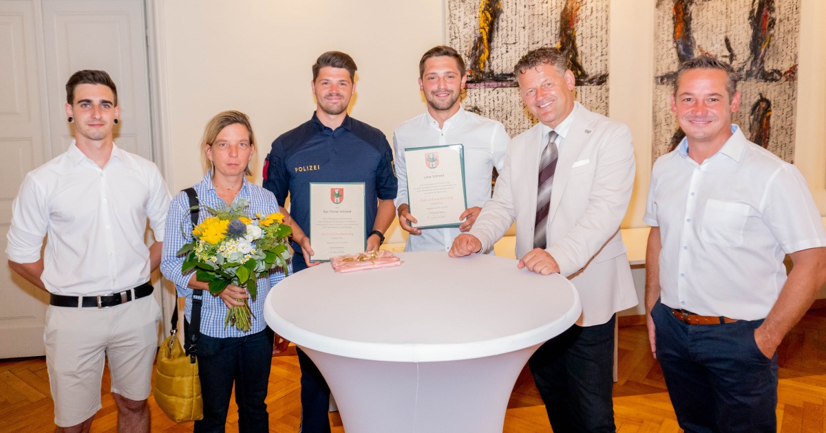 Vor kurzem betrat ein Mann, der mit einem Messer bewaffnet war, eine Tankstelle – mit der Absicht, diese auszurauben. Lukas Schmied war Zeuge des Überfalls und meldete ihn sofort bei seinem Bruder Florian, der bei der Polizei arbeitet. Lukas Schmied nahm die Verfolgung des Täters auf und übermittelte seinen Standort ständig der Polizei. Die Exekutive leitete die Fahndung ein, auch Florian Schmied war dabei. Der Täter konnte kurze Zeit später gefasst werden.