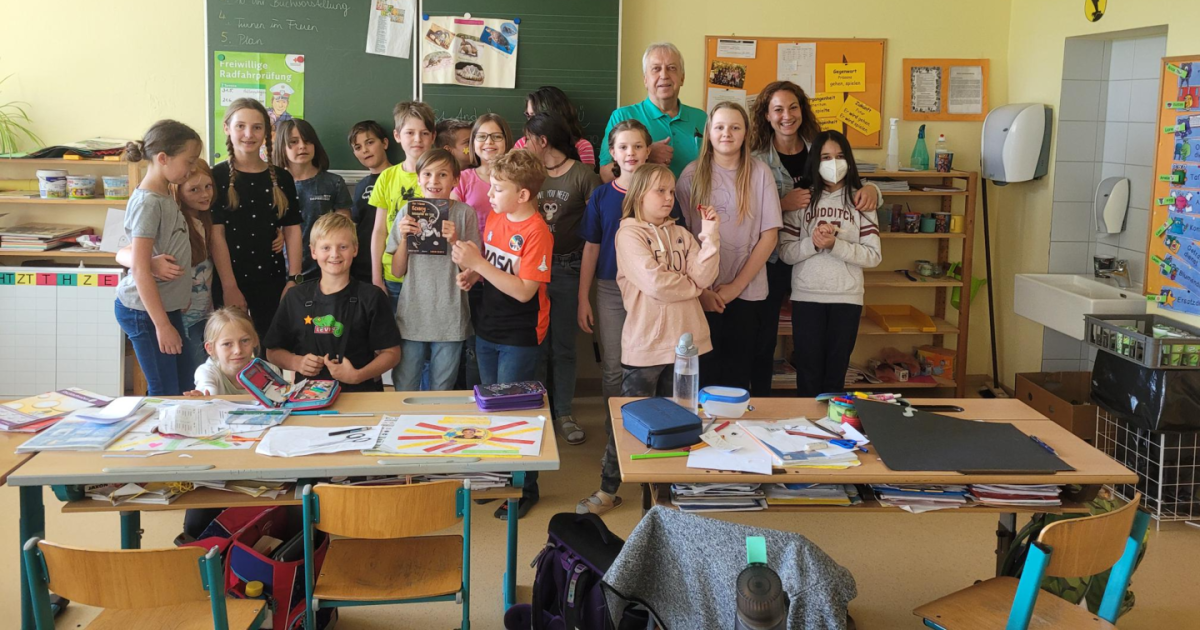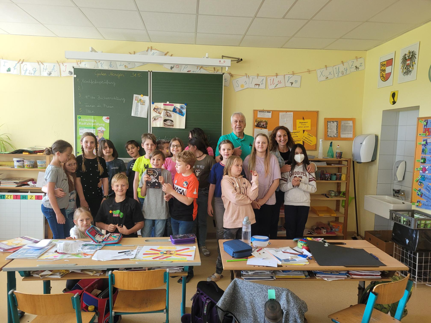 Das ganze Klassenzimmer der 4A, Volksschule 8 in Villach-St. Andrä, wurde zu einem „Raumschiff“. Denn der Autor Harald Raffer las vor 20 Mädchen und Buben aus seinem Kinder- und Jugendbuch (Drava-Verlag). Die Schüler lauschten gespannt den Abenteuern des Protagonisten und bewunderten die Zeichnungen der Illustratorin Karolina Golightly. Im Mittelpunkt der Geschichte steht ein zwölfjähriger, erfinderischer und mutiger US-Schüler, der mit „ausgeliehenen“ Raketen ins All startet. Dort trifft Ronny auf den verschiedenen Planeten auf bizarre Außerirdische. Er versucht, mit einer selbstgebastelten Übersetzungsmaschine die Erde und Menschheit zu erklären und wird so – wie der Titel es bereits ankündigt – zum Botschafter der Erde. Dabei begegnet Ronny auch verfeindeten Wesen. „Gerade in Zeiten, in denen wir in Europa einen fürchterlichen Krieg miterleben müssen, werden in diesem Werk brutale Schlachten und falscher Heldenmut angeprangert“, meinte Raffer. Die Kinder und Klassenlehrerin Stefanie Felver waren sich einig, dass irgendwo im Universum noch Leben existiert. „Vielleicht sogar in der Milchstraße?“ Der Autor verloste übrigens noch ein Buch und verteilte kleine Sterne und Abziehbilder von Raumfahrern. Astronaut Franz Viehböck und ESA-Chef Josef Aschbacher zählen längst zu den Fans des jungen Sternen-Flitzers.