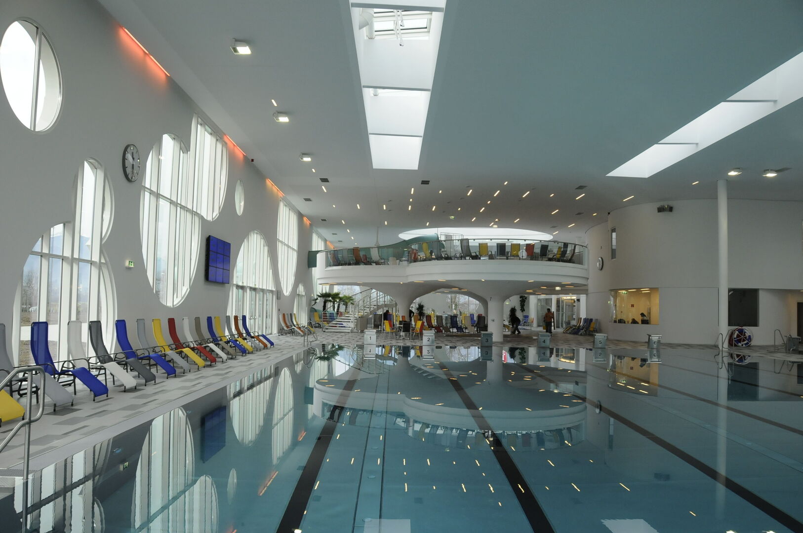 Sportbecken mit sechs Bahnen und Trainingsbecken