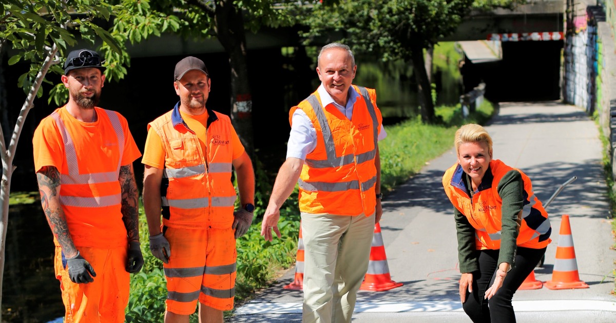 Die Paternionerbrücke wird von Radfahrern und Fußgängern als Unterführung der Villacher Straße genutzt. Aufgrund der steigenden Frequenz an Radfahrern kann es zu Platzproblemen und somit zu Gefahrensituationen im Begegnungsverkehr kommen. Deswegen wurden von der Stadt weitere Maßnahmen zur Verkehrssicherheit gesetzt. Auf beiden Seiten der Unterführung ist ab sofort deutlich „Achtung Engstelle“ zu lesen. Auch Tafeln wurden aufgestellt, die auf die Engstelle hinweisen und Radfahrer zur erhöhten Vorsicht mahnen. „Mit den Markierungen können wir die Gefahrenstelle entschärfen. Es ist wichtig, dass alle Verkehrsteilnehmer aufeinander Rücksicht nehmen“, meint Verkehrsreferentin Stadträtin Sandra Wassermann. Außerdem wurde in der Mitte des Geh- und Radweges eine Strich-Linie angebracht, um die Orientierung im Begegnungsverkehr zu erleichtern. Offen geblieben sind noch die Lichtverhältnisse in der Unterführung, welche die Stadt ebenfalls optimieren möchte.