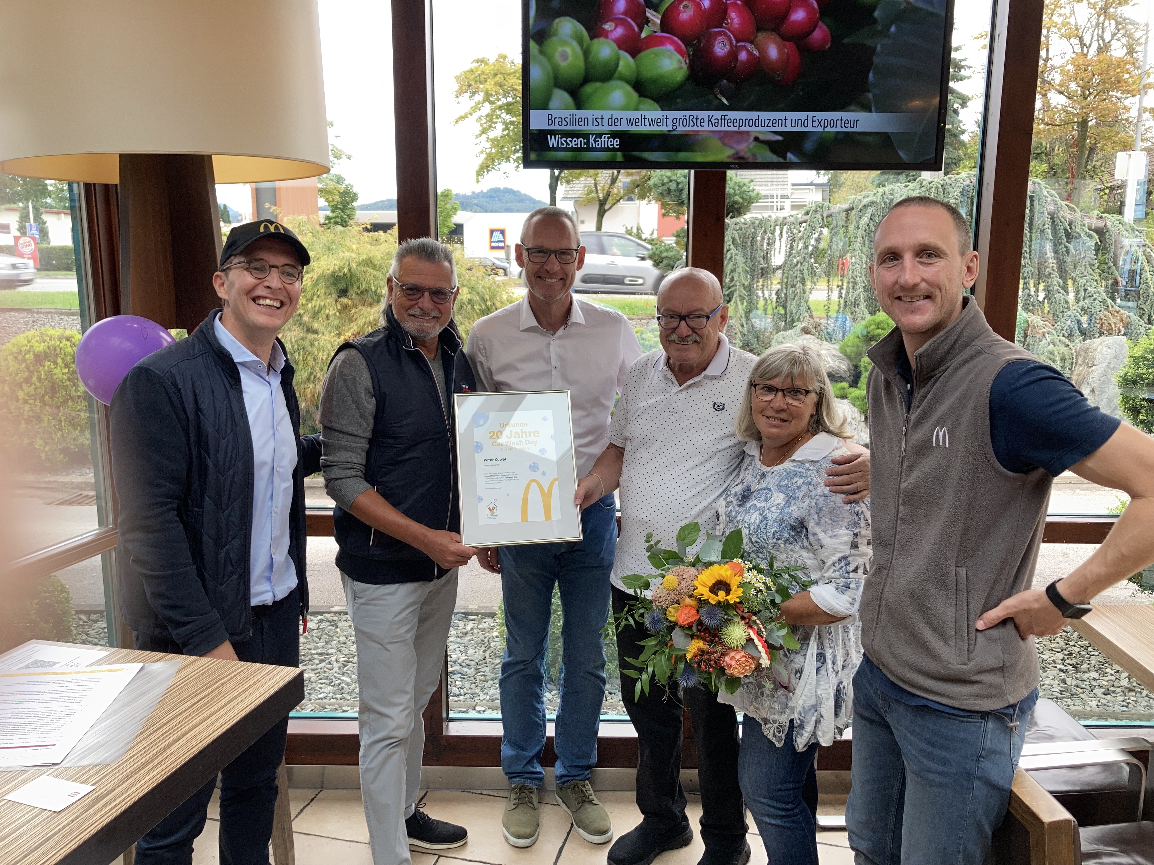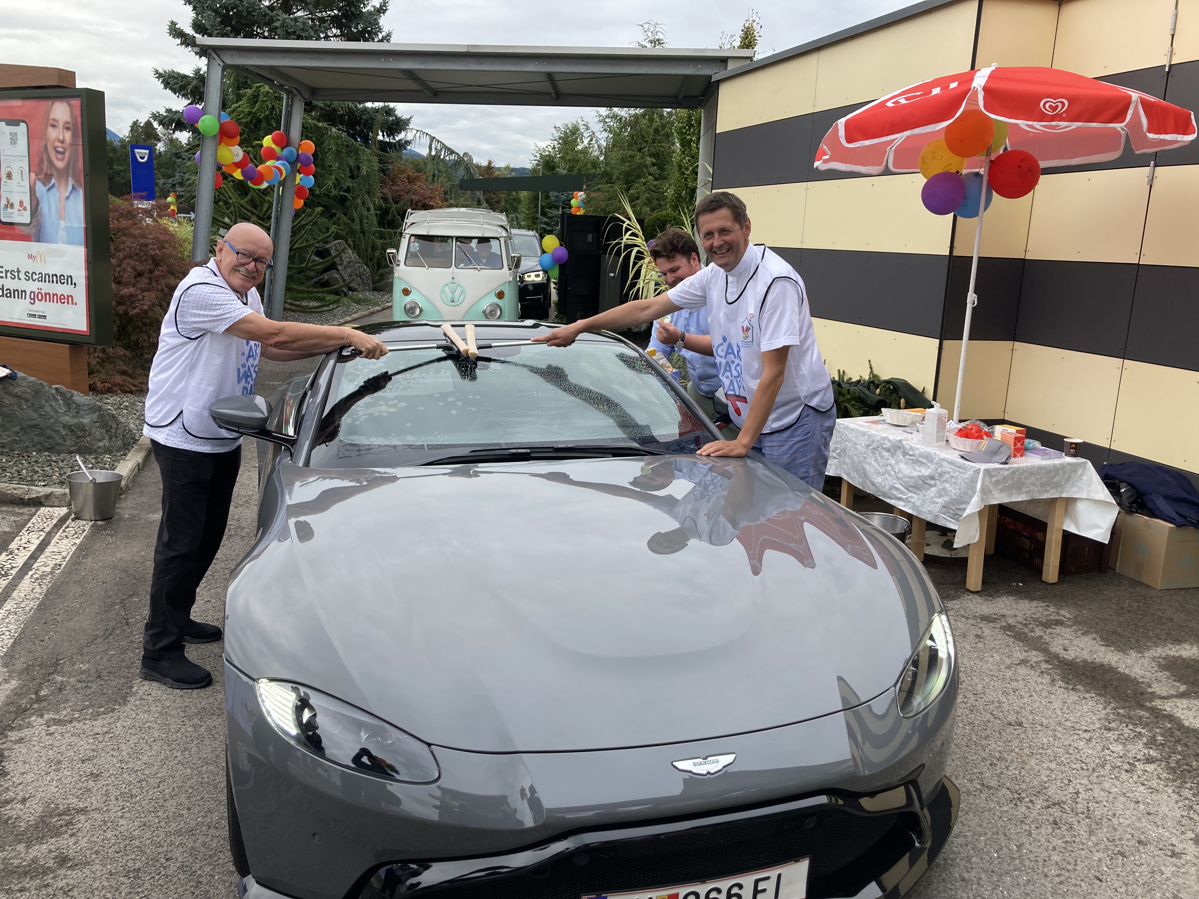 Am 17. September stellten sich zahlreiche Kärntner Prominente im Zuge des McDonald’s Car Wash Day 2021 in den Dienst der guten Sache und polierten im Gegenzug für eine freiwillige Spende die Fensterscheiben der McDrive-Kunden auf Hochglanz. Das karitative Reinigungsteam setzte sich dabei unter anderem aus Dompfarrer Peter Allmaier, Caterer Adi Kulterer, Konzertveranstalter Thomas Semmler und dem Kabarettisten Peter Kowal zusammen. Letzterer wurde darüber hinaus für sein 20-jähriges Engagement für die Charity-Aktion von dem neuen Kärntner McDonald’s Franchisenehmer Rudi Ringhofer, der Walter Jarz‘ sieben Filialen mit Juni übernommen hatte, mit einer Ehrenurkunde ausgezeichnet. Österreichweit beteiligten sich 105 Restaurants an dem Car Wash Day und sammelten Spenden in Höhe von 80.000 Euro, die zur Gänze der Ronald McDonald Kinderhilfe zugutekommen. Die gemeinnützige Organisation ermöglicht schwer kranken Kindern und deren Familien ein Wohnen auf Zeit in unmittelbarer Nähe zu ihrer jeweiligen Therapieeinrichtung.