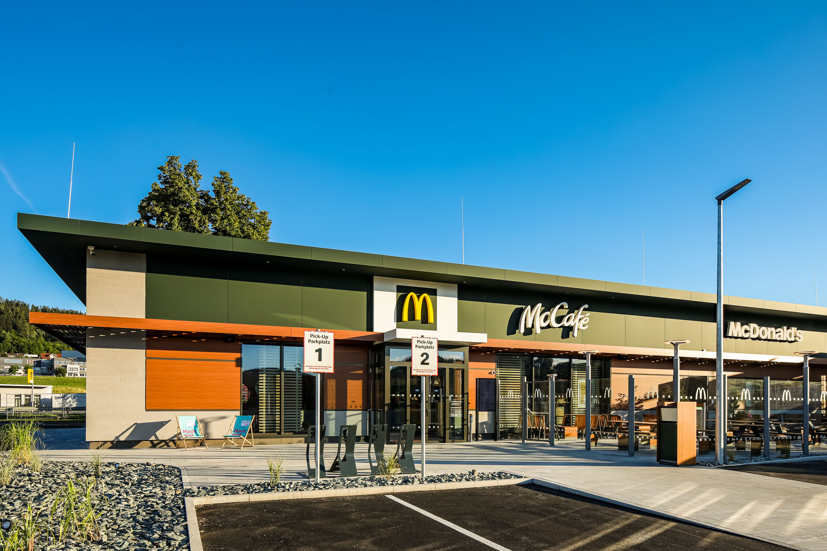 Mit Doppel-McDrive, McCafé und Tischservice lässt das neue McDonald’s-Lokal in Feldkirchen keine Wünsche offen. Ein großer Gästebereich mit 220 Sitzplätzen (davon 98 Plätze auf der Terrasse) lädt zum Verweilen und Wiederkommen ein. Rund 50 Arbeitsplätze in der Region werden mit der Neueröffnung geschaffen. Beim Bau des neuen Gebäudes setzte Karl Jurak den konsequenten Weg der Nachhaltigkeitsstrategie von McDonald’s Österreich fort. So wurde der Standort in Feldkirchen nach den neuesten Umwelt- und Gebäudestandards errichtet und ist mit einer Photovoltaik-Anlage, einem Bioshredder, einer Altölpumpanlage für die Erzeugung von Bio-Diesel, einer Luftwärmepumpe sowie einer leistungsstarken E-Tankstelle ausgestattet.
