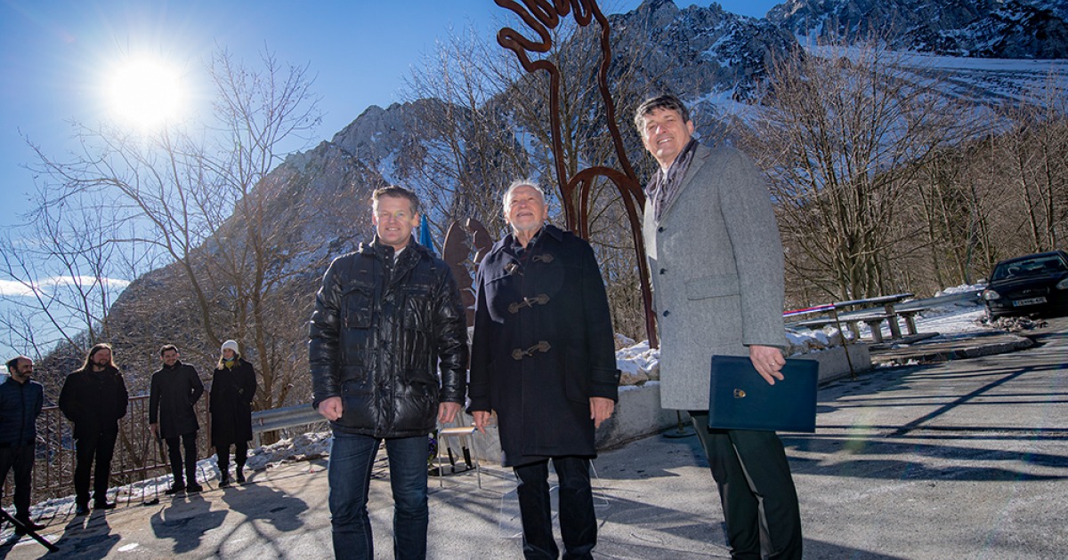 Der erste Teil von Kimotos Mahnmal mit dem Titel „Unvergessen – Ungebrochen“ wurde im Mai 2019 am Tunnelportal Loibl Nord errichtet. Nun folgte der zweite, idente Teil, an der Südseite.