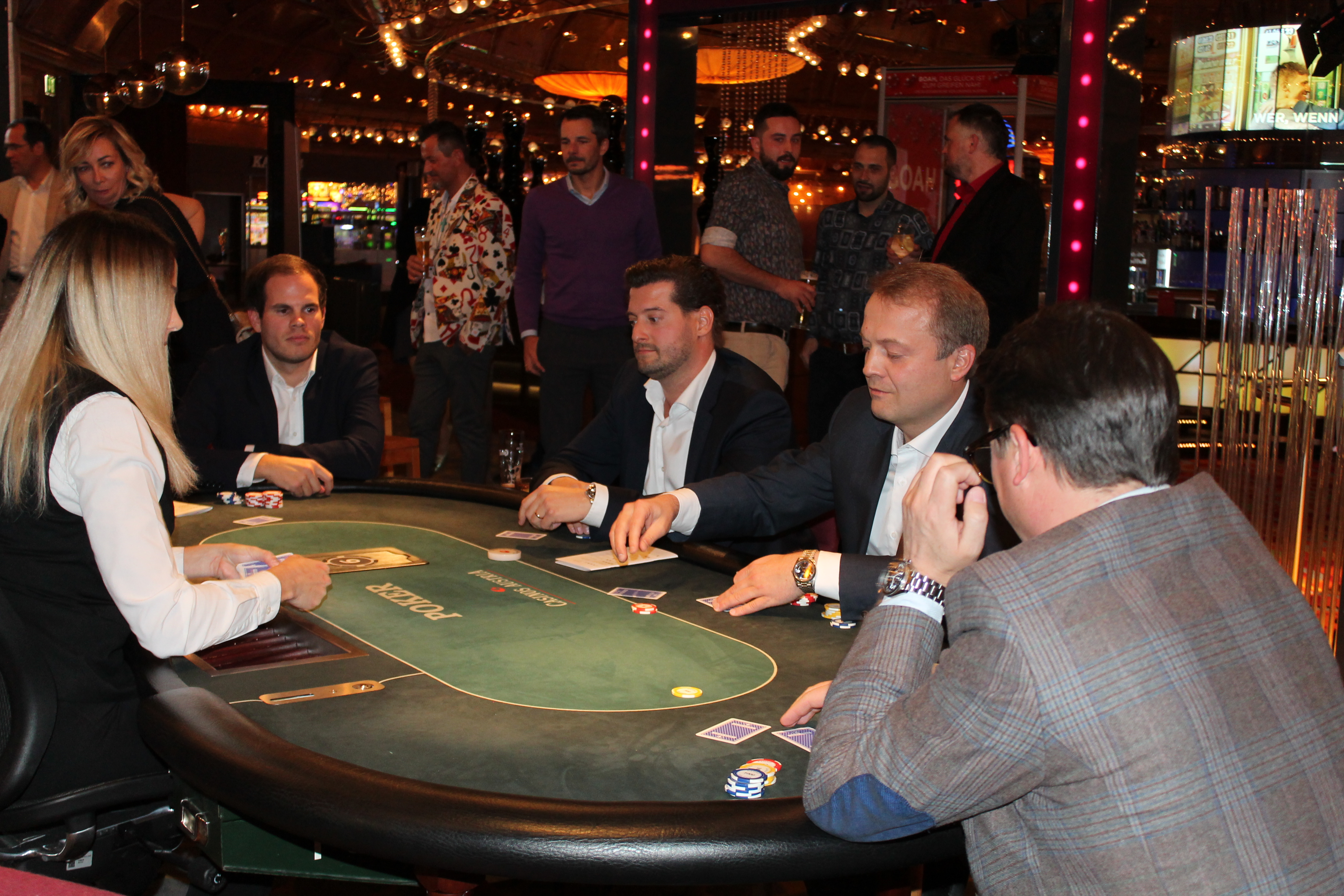 Nachdem Casinodirektorin Marion Roseneder und Weekend Kärnten-Geschäftsführer Daniel Klier sämtliche Teilnehmer des Teamwettbewerbes herzlich willkommen geheißen hatten, ließen die 22 Hobbypokerspieler die Karten sprechen. Die elegante Kulisse des Veldener Casinos wurde daraufhin von einer ausgelassenen Stimmung erfüllt, die von (meist) gutdurchdachtem Taktieren und riskanten Bluffs geprägt war. Für das leiblich Wohl, während der einzelnen Spielpausen, sorgte die hervorragende Haubenküche des Casino Restaurants. Und dank eines Besuchs einer Krampus-Delegation, kam auch das Advent-Flair nicht zu kurz.