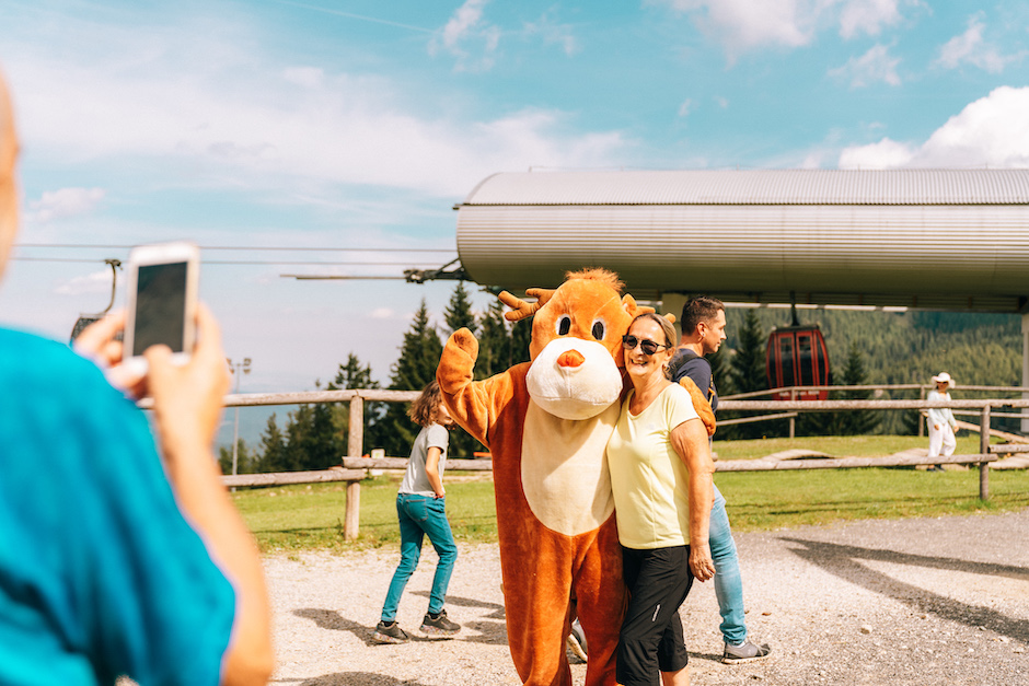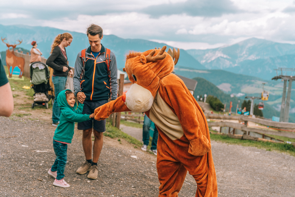 Das Maskottchen "Hirschi" war ständig am Gipfel des Hirschenkogels unterwegs, um alle Gäste und vor allem die jüngsten Bergfexe zu begrüßen. Da wurden zahlreiche Erinnerungen geknipst und viele Kinder und Familien mit unvergesslichen Erinnerungen beschenkt. Und neben Spaß und Action spielte auch das Wetter mit, sodass man die Zeit auch im Liegestuhl rund um das Liechtensteinhaus bzw. bei richtiger guter Bergmannskost verbringen konnte. Und auch der Bikepark mit seinen 18 km Bikestrecken war voll in das Programm integriert und so mancher gestandene Mountainbiker machte mit unglaublichen Sprungtricks Lust auf mehr.