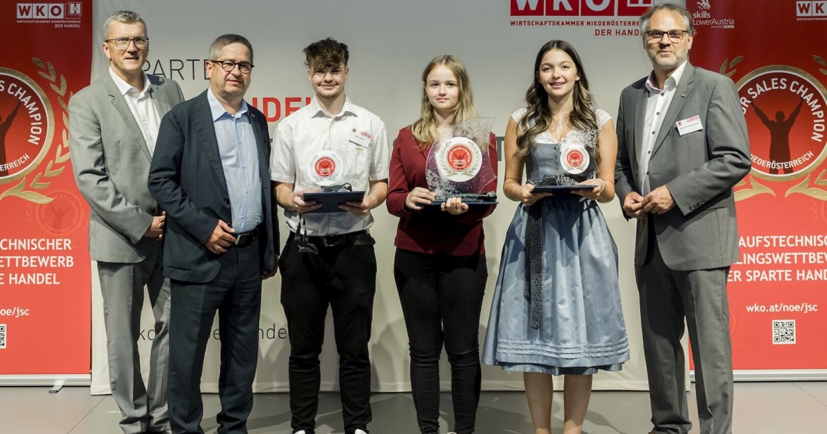 Niederösterreichs beste Nachwuchs-Verkäuferinnen und –Verkäufer stehen fest: Leonie Theiß aus Langschlag (Bezirk Zwettl) vom Lehrbetrieb XXXLutz in Zwettl hat sich in einem spannenden Finale im WIFI St. Pölten zum „Junior Sales Champion 2025“ gekürt und darf sich über ein Preisgeld von 1.500 Euro der Sparte Handel der Wirtschaftskammer Niederösterreich (WKNÖ) freuen. Silber ging an Bastian Reiterer aus Sollenau (Bezirk Wr. Neustadt) vom Lehrbetrieb BILLA AG in Felixdorf (Bezirk Wr. Neustadt) mit einem Preisgeld von 700 Euro, Bronze und ein Preisgeld von 300 Euro an Celina Bartilla aus Kirchberg/Wechsel (Bezirk Neunkirchen ) vom Lehrbetrieb Köck M. GmbH in Kirchberg/Wechsel. Theiß und Reiterer werden Niederösterreich nun auch beim Bundeslehrlingswettbewerb am 8. Oktober in Salzburg vertreten.