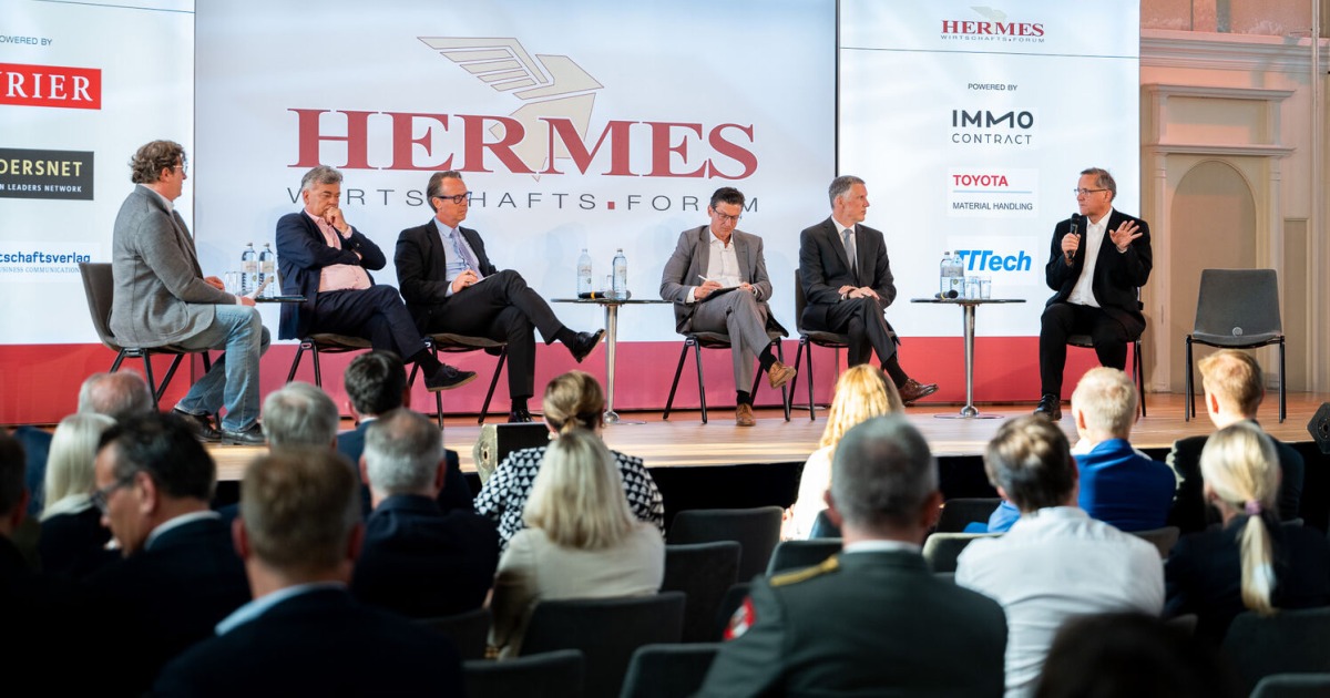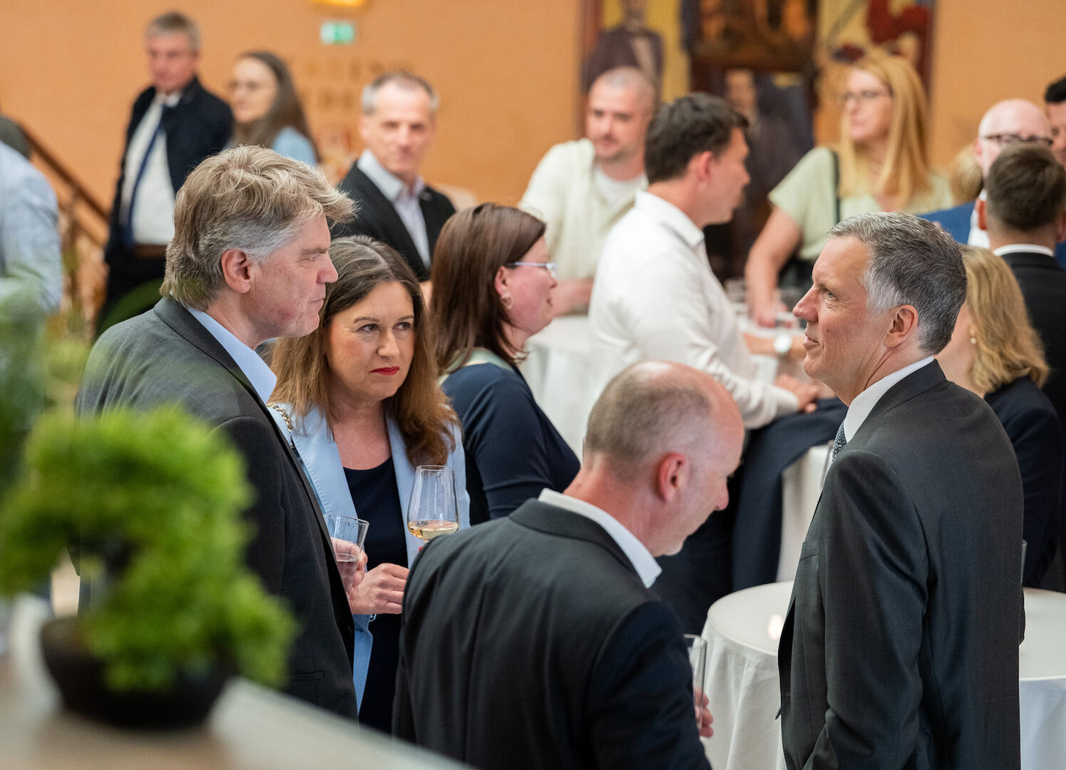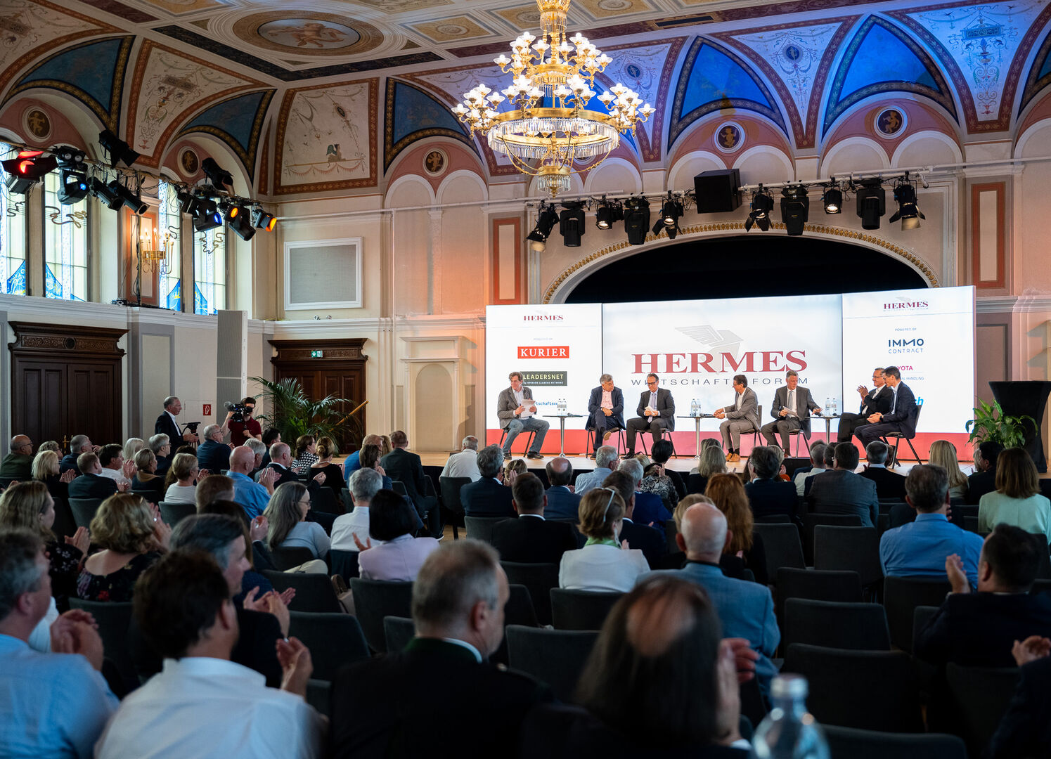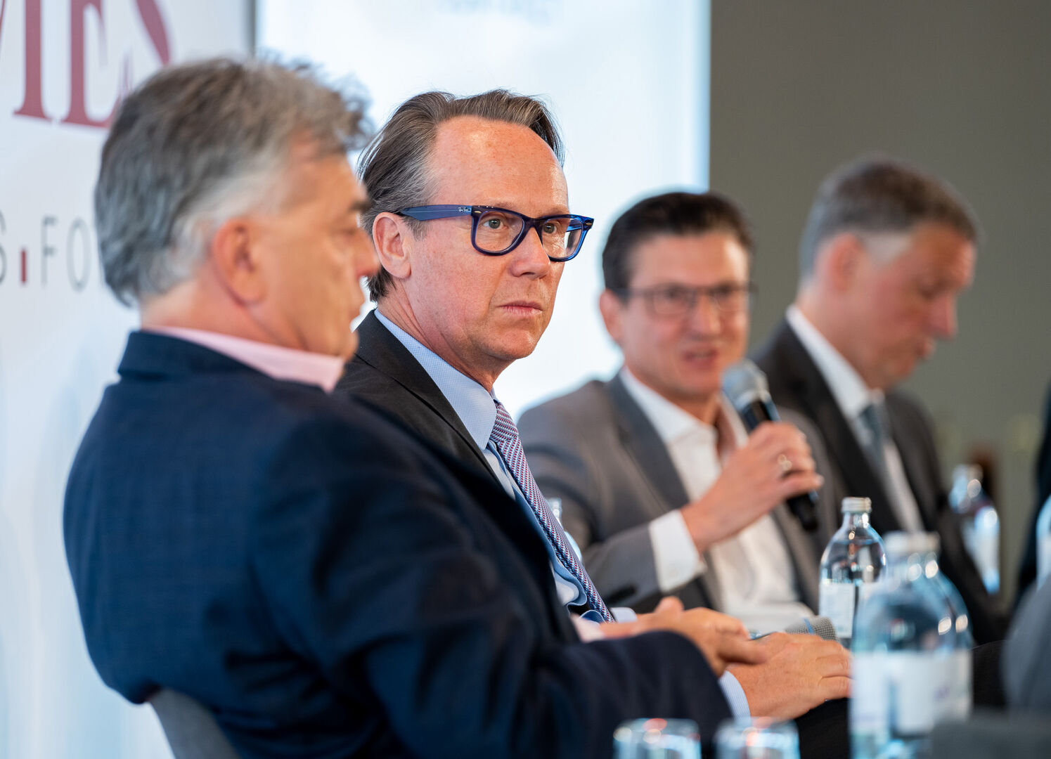 Unter der Leitung von Kurier-Redakteur Bernhard Gaul diskutierten vor über 200 nationalen und internationalen Gästen am 31. Mai zwei prominente Podiumsrunden. Die "Wirtschaft trifft Politik"-Runde repräsentierten Vizekanzler Werner Kogler – Die Grünen, Joachim Haindl-Grutsch – GF Industriellenvereinigung OÖ, Martin Wagner – GF VERBUND Energy4Business, Alexander Klacska – WKO Bundesspartenobmann Verkehr, Günter Ofner – Vorstand Flughafen Wien und Georg Kopetz – CEO TTTech Computertechnik.