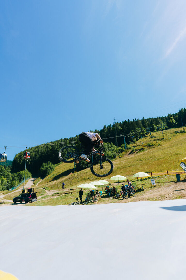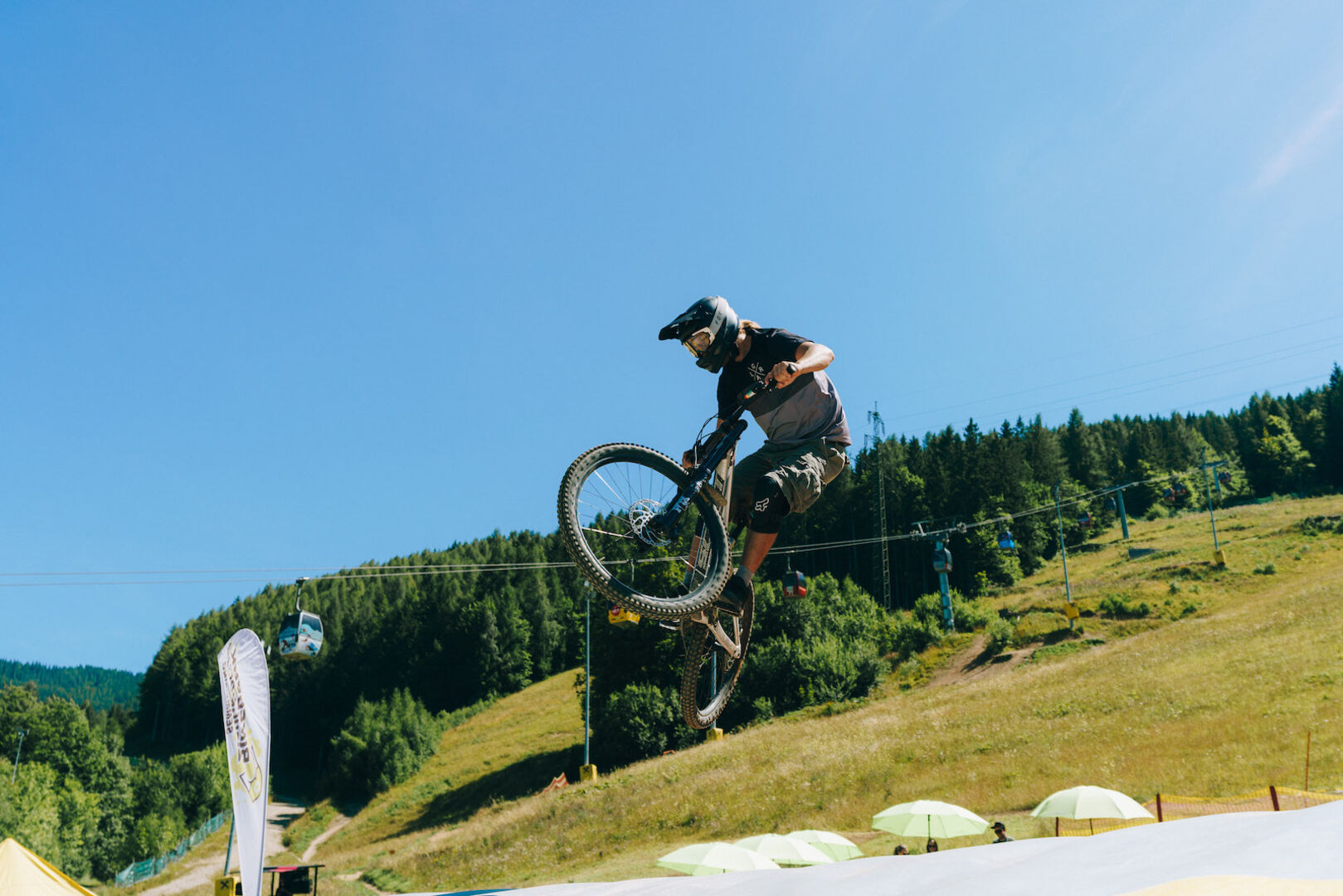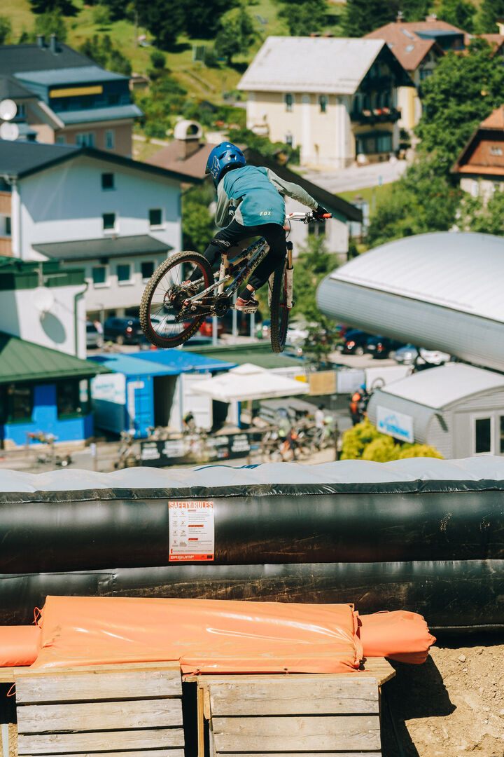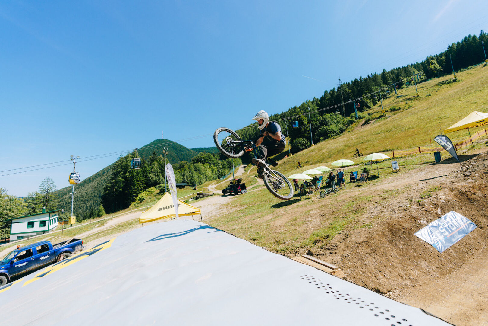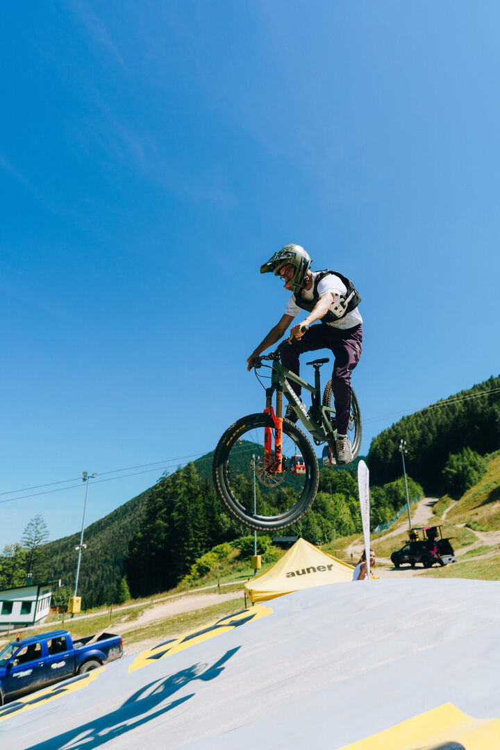 Am Samstag, 12. August, läuteten am Semmering zu Mittag die Glocken. Allerdings war nicht High Noon angesagt, im Gegenteil: Bikeprofis und Adrenalinjunkies sowie die gesamte Mountainbike-Fangemeinde war zur Eröffnung des neuen Bag Jumps gleich neben der Talstation der Semmering Hirschenkogel-Gondelbahn eingeladen.