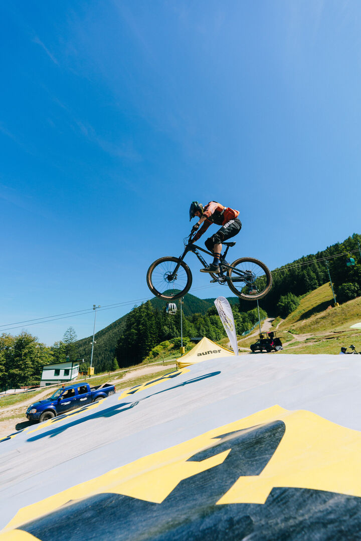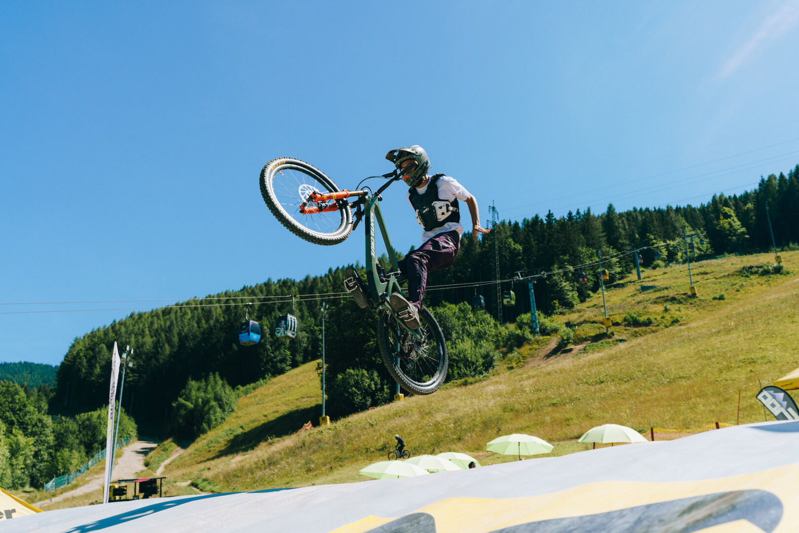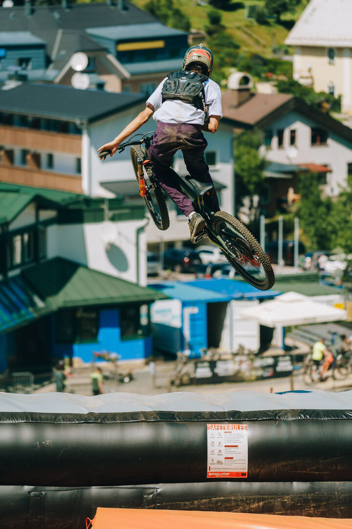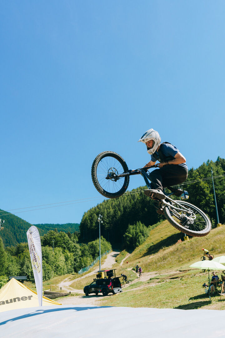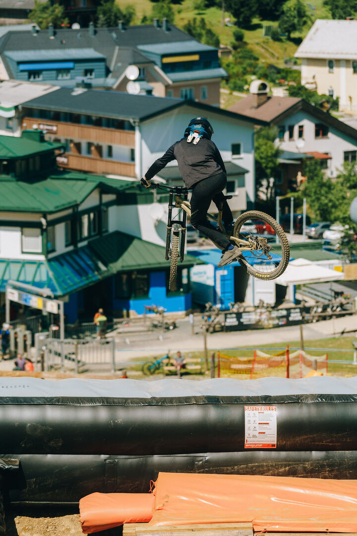 Am Samstag, 12. August, läuteten am Semmering zu Mittag die Glocken. Allerdings war nicht High Noon angesagt, im Gegenteil: Bikeprofis und Adrenalinjunkies sowie die gesamte Mountainbike-Fangemeinde war zur Eröffnung des neuen Bag Jumps gleich neben der Talstation der Semmering Hirschenkogel-Gondelbahn eingeladen.