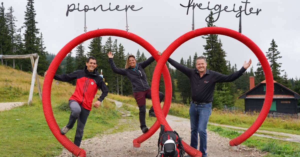 Für ein bewusstes Einsteigen in das Bergerlebnis sorgt in Zukunft das neue Konzept „pioniere & freigeister“. Die erste Phase des Projekts steht kurz vor Abschluss – Schautafeln, Skulpturen, das „Infinity-Gate“, die „Welcome-Terrasse“, die „Sigmunds“ (10 Couch-Elemente sind der berühmten Couch von Sigmund Freud gewidmet) und weitere Elemente wurden bereits installiert. Scharfegger: „Der Erlebnisraum Rax inszeniert den Berg mit einem roten Faden. In diesem Fall handelt es sich um ein rotes Seil, das die Pioniere und Freigeister in den Vordergrund rückt. Bei den Erlebnispunkten handelt es sich um eine gelungene Verbindung von Erlebnissen und Informationen. Für die Kinder entwickeln wir zudem einen Spielepass, der ein großes Abenteuer verspricht.“