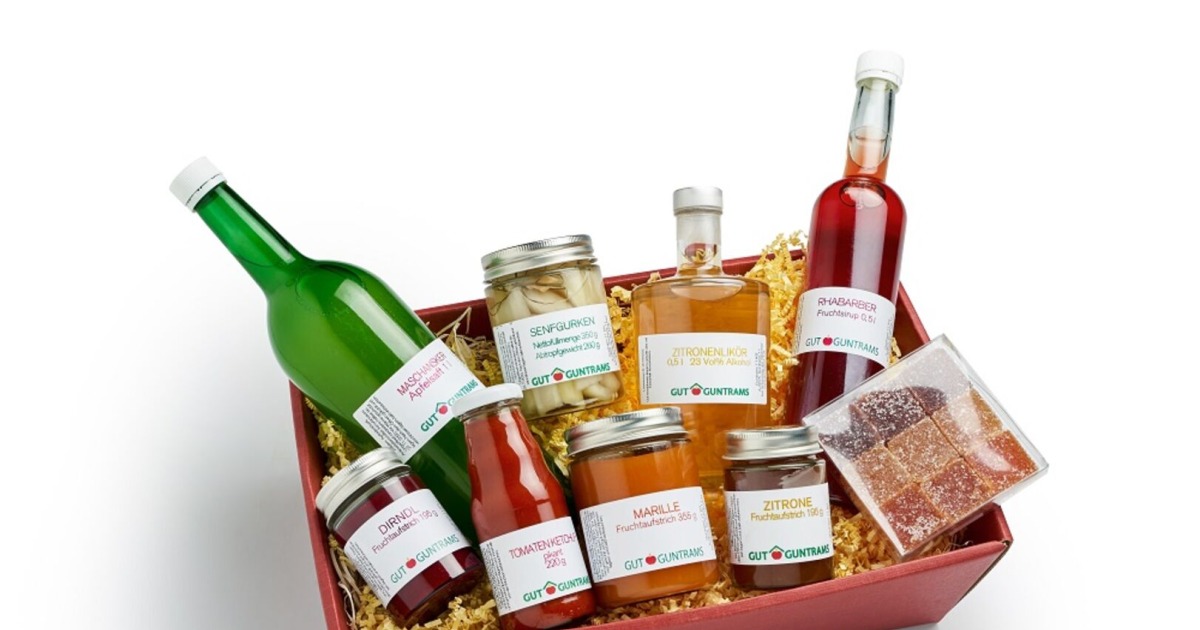 Die Empfehlungen für den Gabentisch sind: das 3er Marmeladen-Set von Gut Guntrams (Hagebutte, Marille und Zwetschke um Euro 14,- inkl. Verpackung), die 3er Spirits-Box mit Hochprozentigem nach Wahl aus der Edelmacherei um Euro 44,00) oder das 2er Geschenksackerl mit Guntramser Apfelsäften nach Wahl. Einen guten kulinarischen Überblick bietet auch der „Guntramser Geschenkkorb“ ein Potpourri an Erzeugnissen aus der Edelmacherei um Euro 48,00 mit einer Auswahl an selbstgemachten Köstlichkeiten. Zu beziehen sind die Produkte durch kontaktlose Abwicklung & Abholung im Hofladen Guntrams oder auf Wunsch auch im Wiener Schlossquadrat (Trattoria Margareta). Bestellungen unter info@guntrams11.at oder 02627/83333.