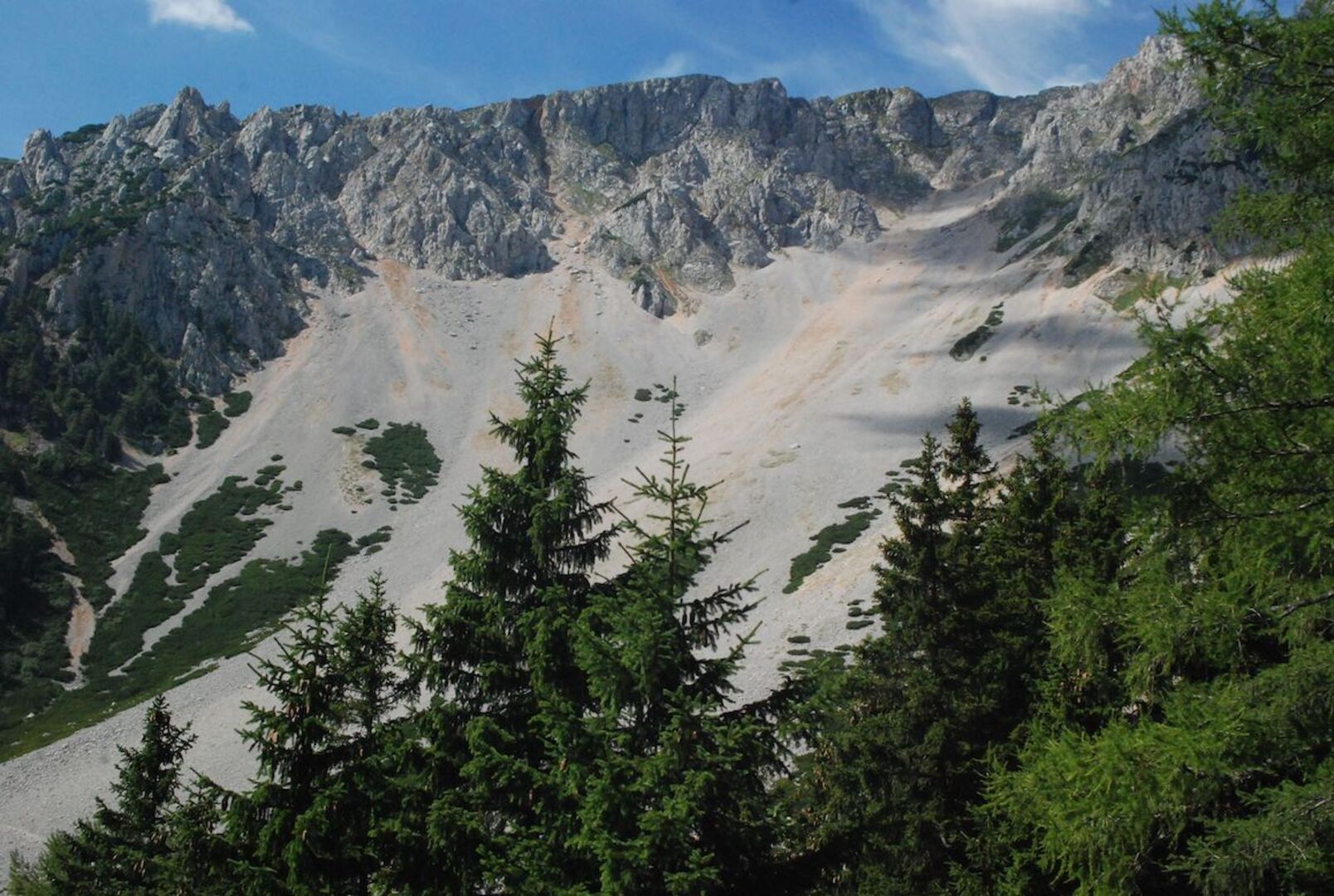 Ein anderer Hot Spot gleich gegenüber ist der Schneeberg. Aber Achtung: Dieser erlebt an schönen Tagen die moderne Völkerwanderung. Wer den Berg in allen Facetten erleben möchte sollte den Gipfel sein lassen und weiter unten bleiben. Der Nördliche Grafensteig von der Station Baumgartner bis zum Almreserlhaus ist in vier Stunden durchgangen und bietet auf ca. 1400 Meter Seehöhe alles, von Fels bis Wiese, von Latschen bis Schotterrinnen. Imposant: die Breite Ries.
