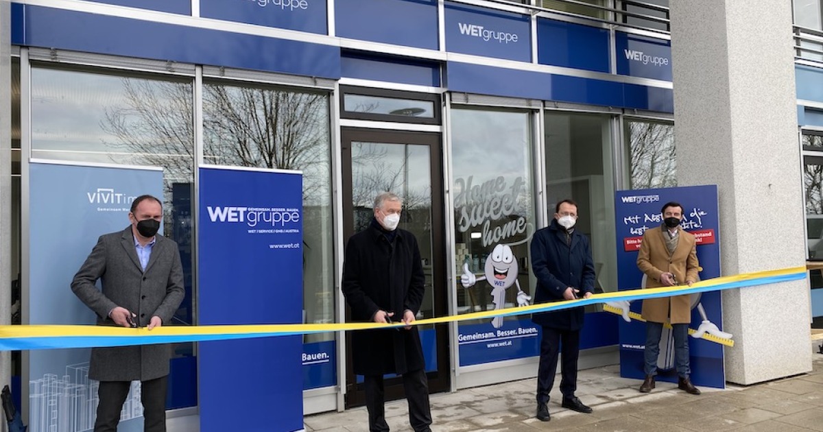 Gemeinsam mit dem Tochterunternehmen VIVITimmo (vormals HYPO Real Consult) bezog die WETgruppe ab sofort die Räumlichkeiten am St. Pöltner Landhausboulevard. Das offene Büro mit Besprechungsräumen und Working Café wurde von Marginter Architekten geplant und bietet ein zeitgemäßes Arbeitsumfeld für rund 25 Mitarbeiterinnen und Mitarbeiter beider Unternehmen. Die offizielle Eröffnung im coronabedingt kleinen Kreis fand am 16. März 2021 im Beisein von Landesrat Martin Eichtinger sowie Vertretern der beiden Unternehmen statt. „Die gemeinnützigen Bauträger sind für uns entscheidende Partner in der Umsetzung der Wohnbaupolitik. Ich freue mich, dass die WETgruppe mit ihrem neuen Standort ein Zeichen zur Stärkung der erprobten und wertvollen Zusammenarbeit mit dem Land Niederösterreich setzt“, betont Wohnbau-Landesrat Martin Eichtinger.