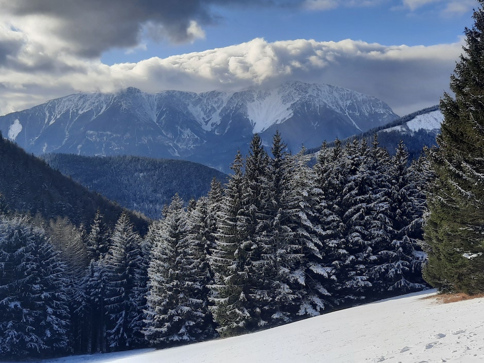 Anninger, Hohe Wand, Semmering, Mönichkirchen-Mariensee. Die bekannten Ausflugsziele leiden derzeit unter dem aktuellen Frischlufttrend. Weekend-Bergfex Andi Dirnberger hat einige Ziele rund um die Gutensteiner Alpen ausgesucht, wo man die Schönheit des Winters ohne Berührungsängste genießen kann. Ein beliebter Wanderklassiker ohne Massenansturm beginnt am Aschersattel zwischen Miesenbach und Puchberg am Schneeberg und führt zum Öhlerkreuz. Etwa in der Mitte des Weges liegt die Hochwiese „Kaisereben“ und bietet von dort einen atemberaudend schönen Blick zum Schneeberg. Schneeschuhe wird man auf dieser Route kaum brauchen, außer man ist als Erster nach frischem Schneefall am Weg. Sehr empfehlenswert ist der „Umweg“ über das Blättertal zu den Ausläufern der Dürren Wand und zum Öhler-Schutzhaus.