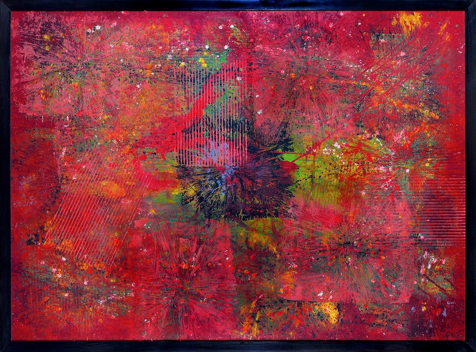 Der Künstler zu seiner Entwicklung: „Nach meinem schweren Unfall 2011 und den eineinhalb Jahren Krankenhausaufenthalt stellte ich mir vorerst deprimiert die Frage: ‚Ist das das Ende meiner 1968 begonnenen Künstlerkarriere? Nein, im Gegenteil ein Neubeginn beschäftigte meine Fantasie, der letztlich 2019 zum Durchbruch kam. Eine neue Art von Malerei müsste die Konsequenz sein. Ich experimentierte mit einfachen, aber widerspru!chlichen Grundelementen und einer vom malerischen Zeichen bestimmten, repetitiven Bildsprache. Mit komplexer Verwobenheit mu!sste sie zugleich eine ideale Grundform für ein strukturell-analytisches System einer informellen gestischen Malerei sei.“