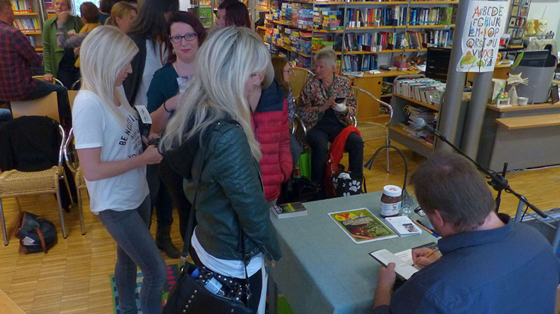 Das Highlight für die Großen war am nächsten Tag der Krimibrunch mit einer Lesung von Andreas Gruber. Dessen Fans stürmten die Bibliothek, die bis auf den letzten Platz ausverkauft war. Zur Überraschung so mancher wartete der Autor, der für seine mörderischen Thriller bekannt ist, vor allem mit kurzweiligen Anekdoten auf.