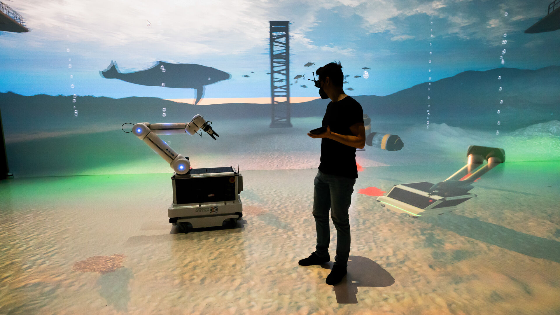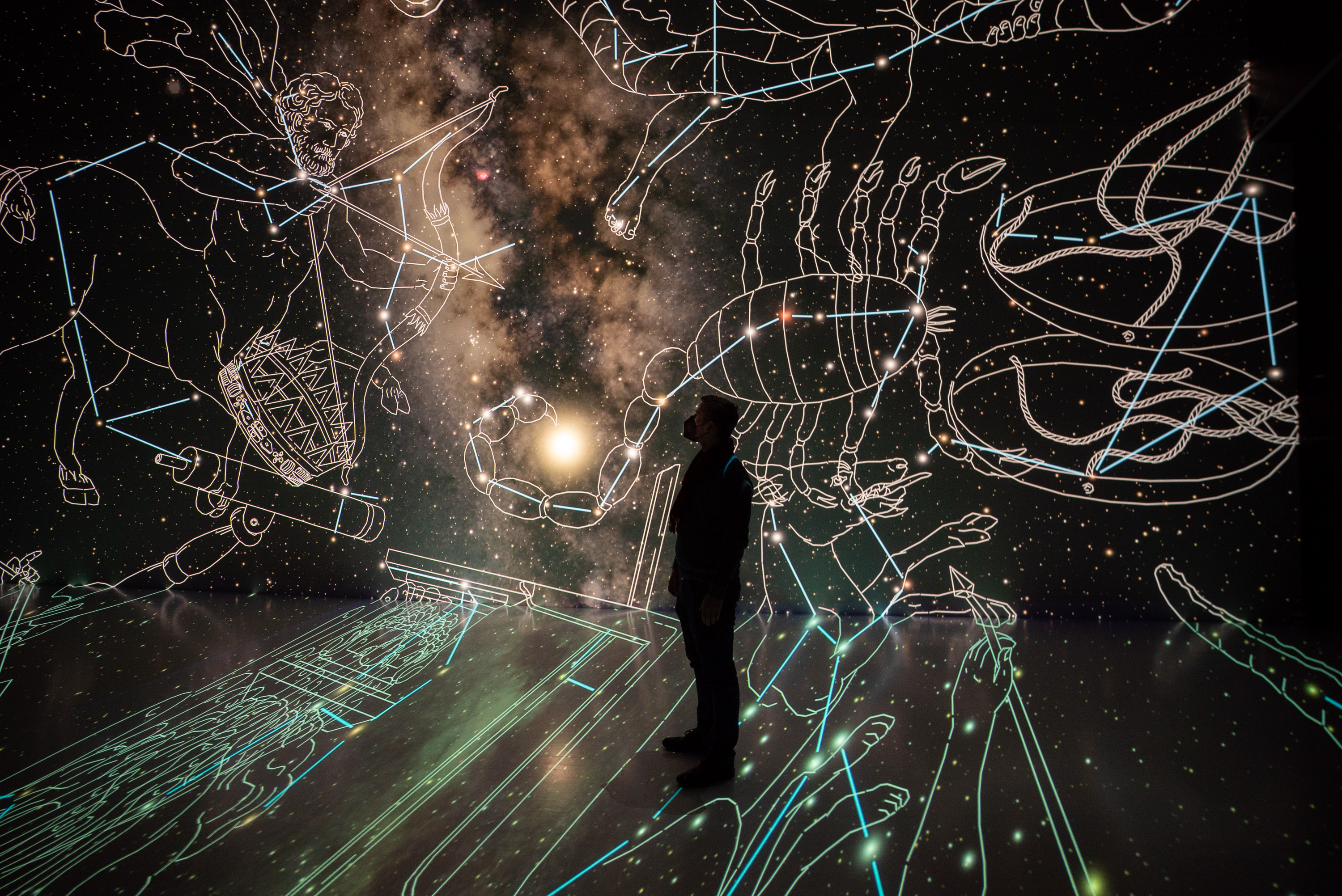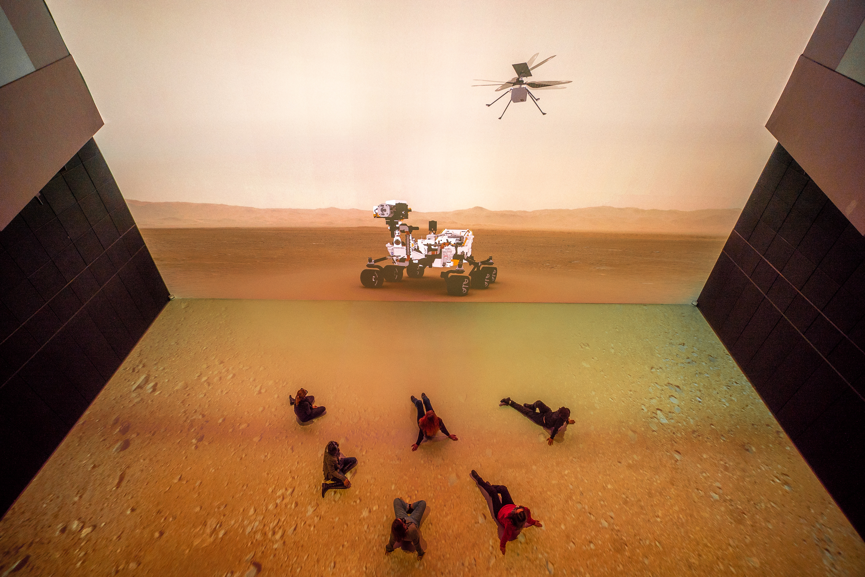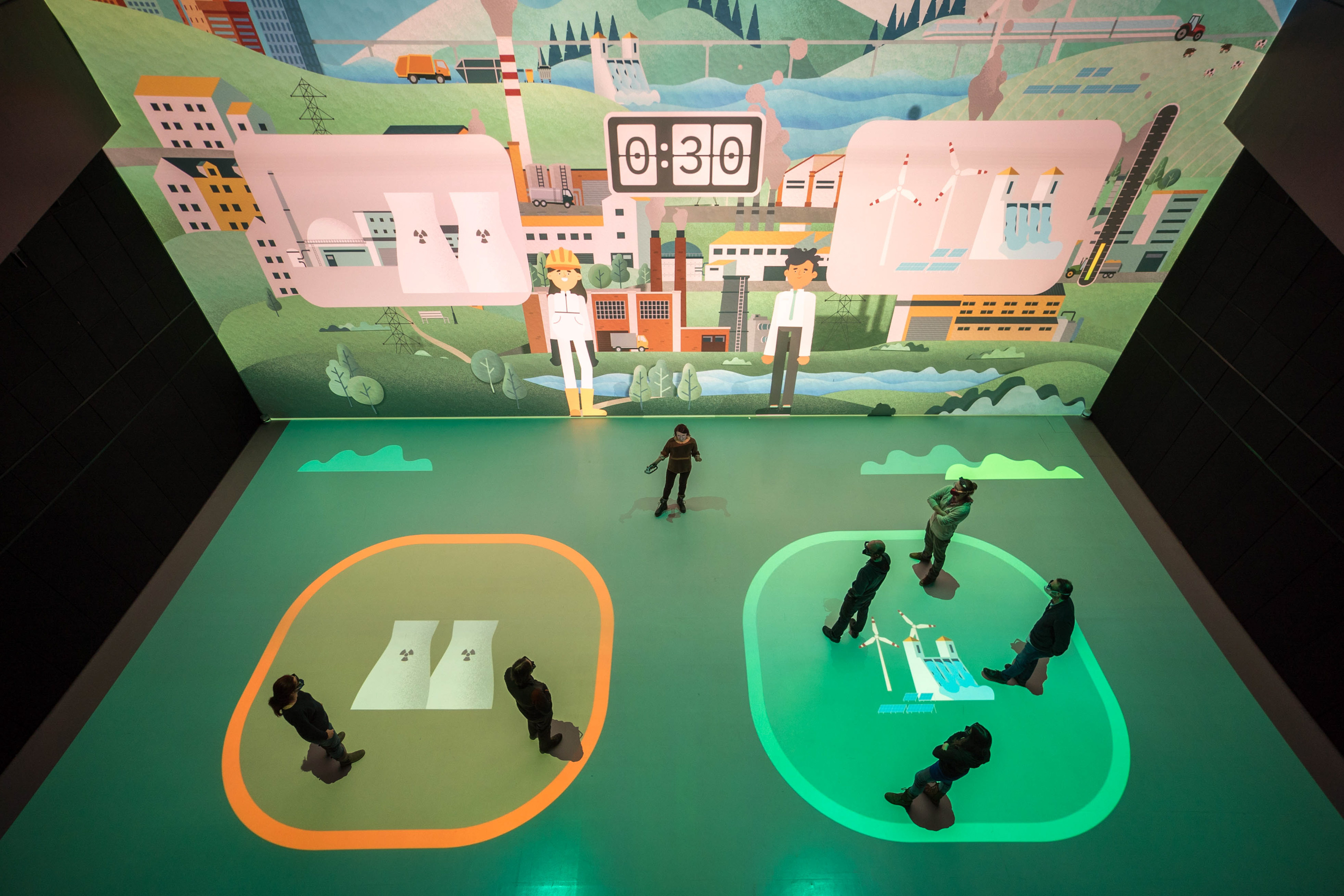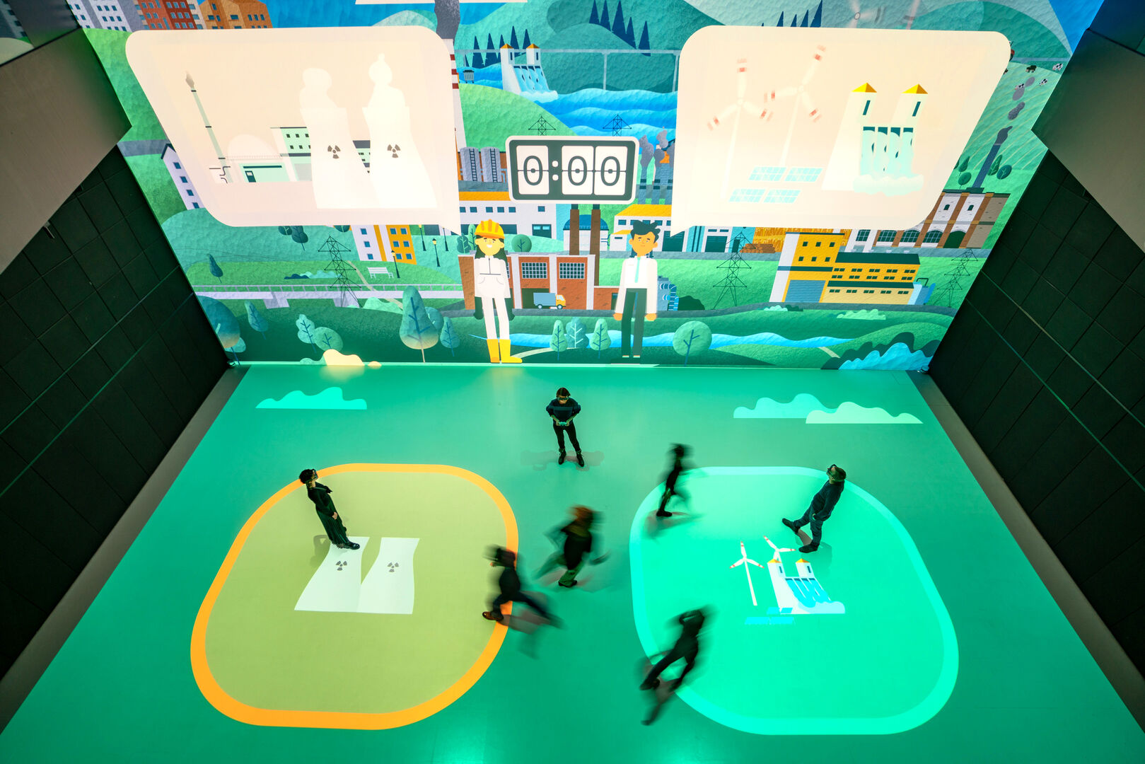 Besucher können sich unter anderem auf eine Reise durch das Sonnensystem begeben und erfahren, warum sich Leben auf der Erde überhaupt entfalten kann. Sie können Entscheidungen treffen, die die Klimaentwicklung auf dem fiktiven Planet B beeinflussen oder den komplexen Aufbau des menschlichen Organismus sehen. Welches Potenzial im Zusammenspiel von Mensch und Maschine steckt, zeigt außerdem das 3D-Video „Sounding Letters“, das auf einem KI-System basiert.