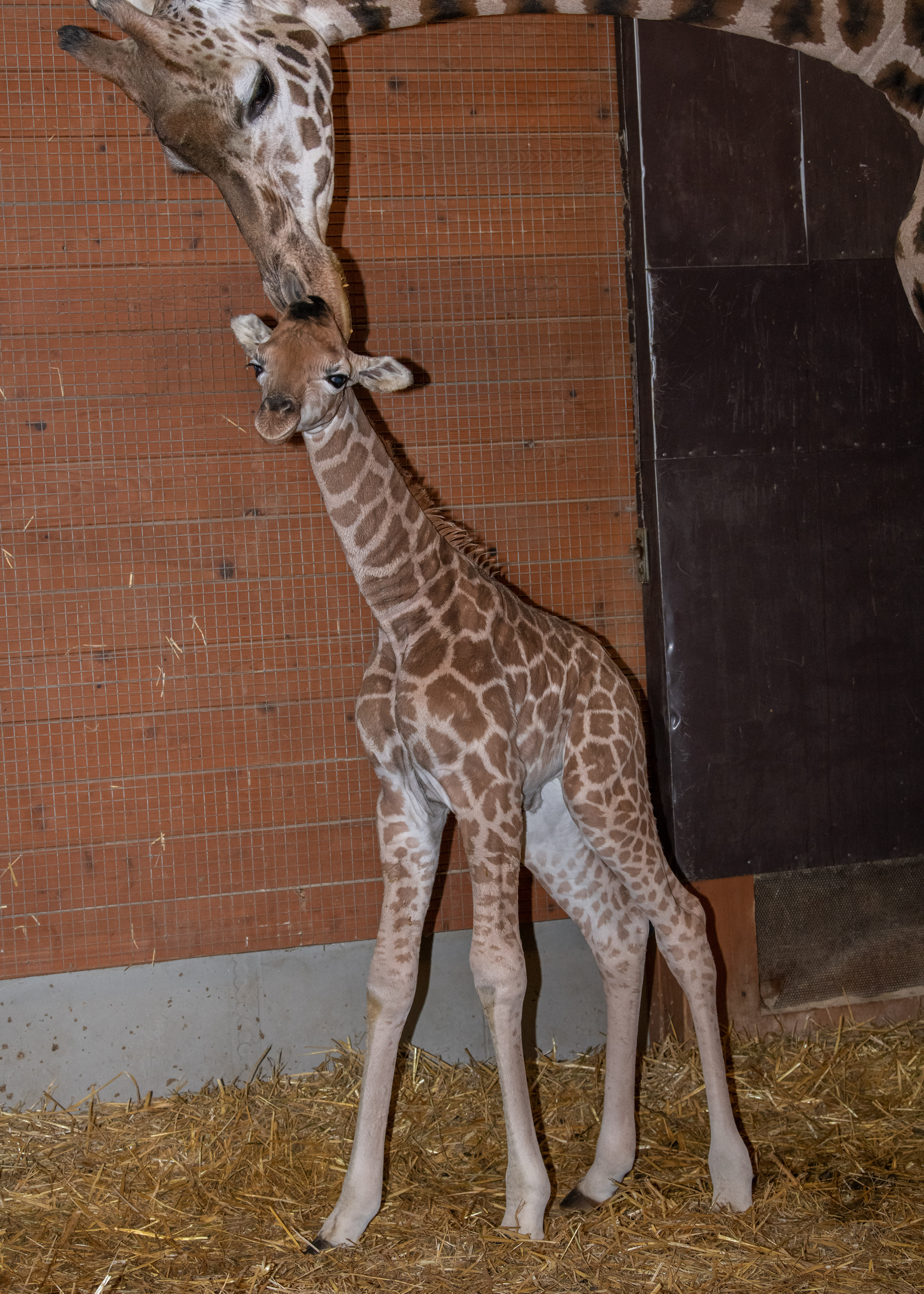 In der Nacht von Freitag auf Samstag hat die 12-jährige erfahrene Giraffenmama Sarah nach 15 Monaten Tragezeit ihr fünftes Junges zur Welt gebracht. Menschliche Hilfe brauchte sie bei der spektakulären Geburt aus zwei Metern Höhe (Giraffen gebären bekanntlich im Stehen) nicht. Der Giraffenbulle landete sanft im Stroh und stand noch innerhalb der ersten Stunde – wenn auch noch etwas wackelig – selbstständig auf seinen Beinen. Neugierig erkundet der „Kleine“ bereits die Welt. Beobachten erlaubt – das Giraffenhaus ist ab sofort für Besucher geöffnet!