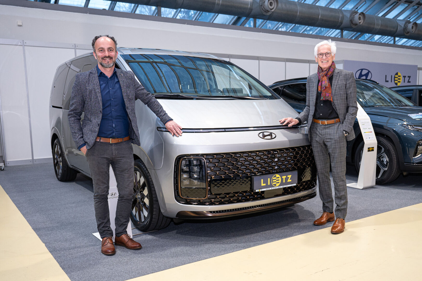 Halil Simsek (li.), Verkaufsleiter Lietz Linz, mit dem neuen Hyundai Staria und seinem Boss, Heinrich Lietz (re.).