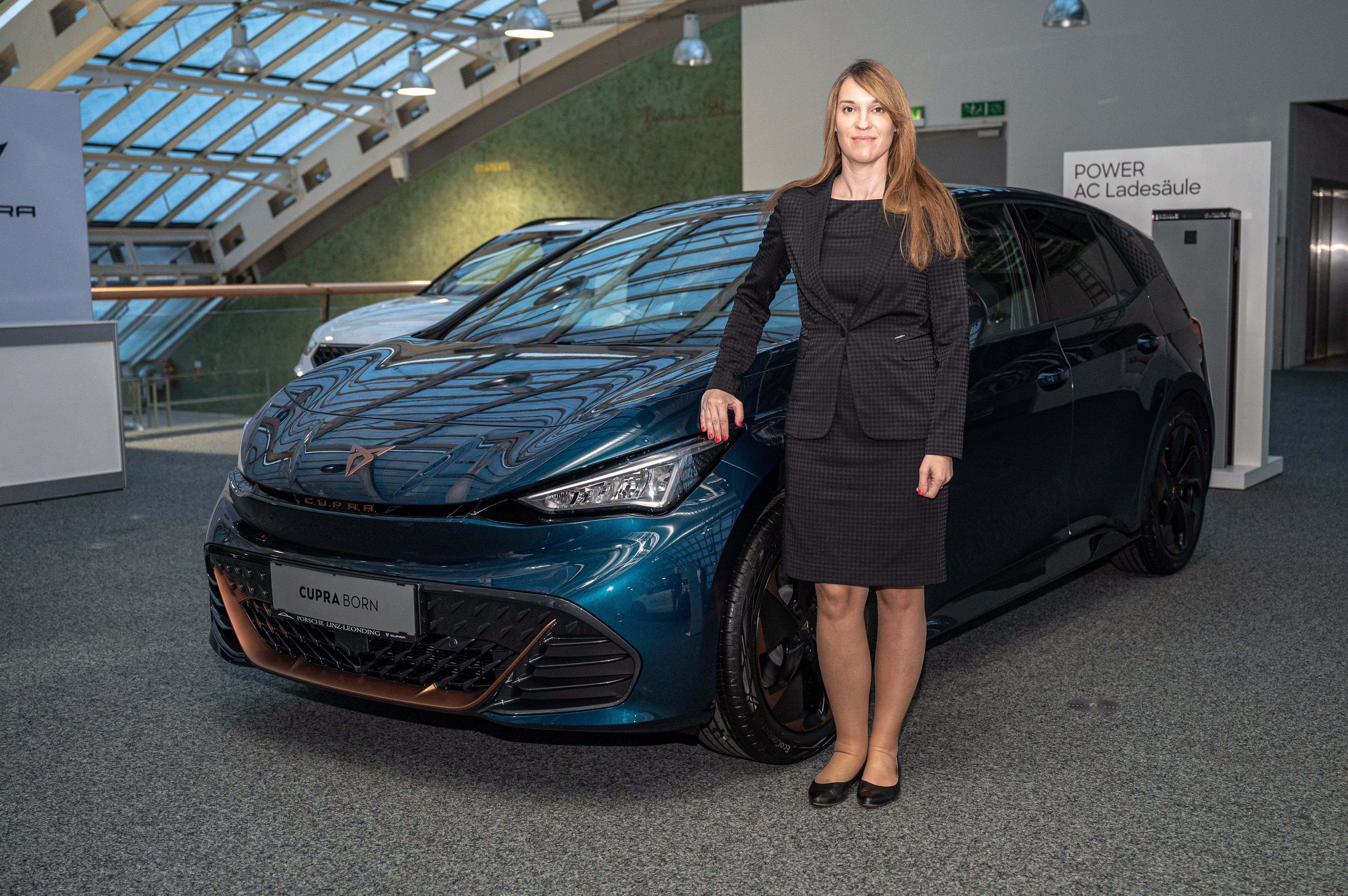 Elisabeth Strübl, Geschäftsführerin von Porsche Linz Leonding, präsentierte den vollelektrischen Cupra Born.
