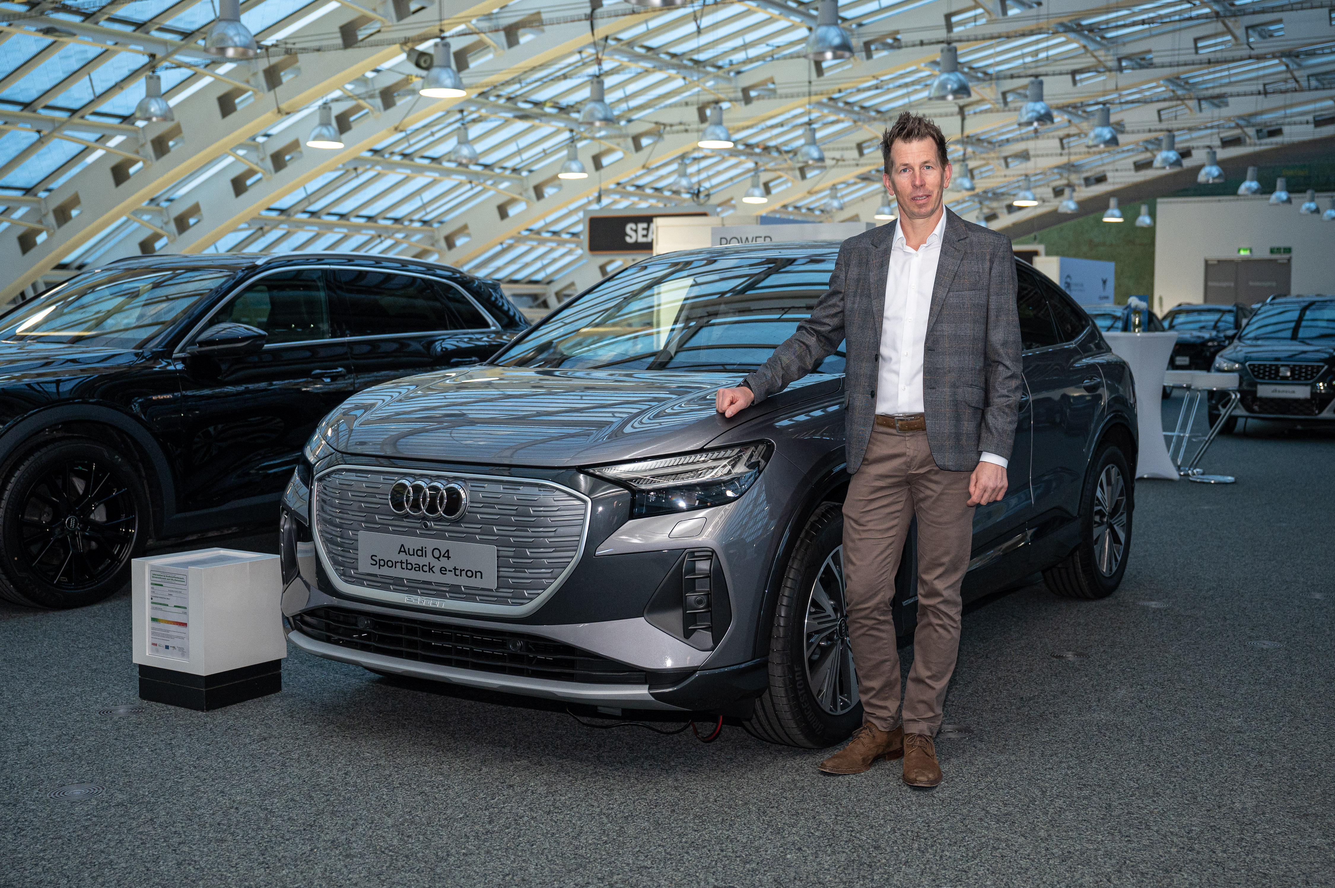 Porsche Linz Geschäftsführer Gerald Schimetich mit dem Audi Q4 e-Tron.