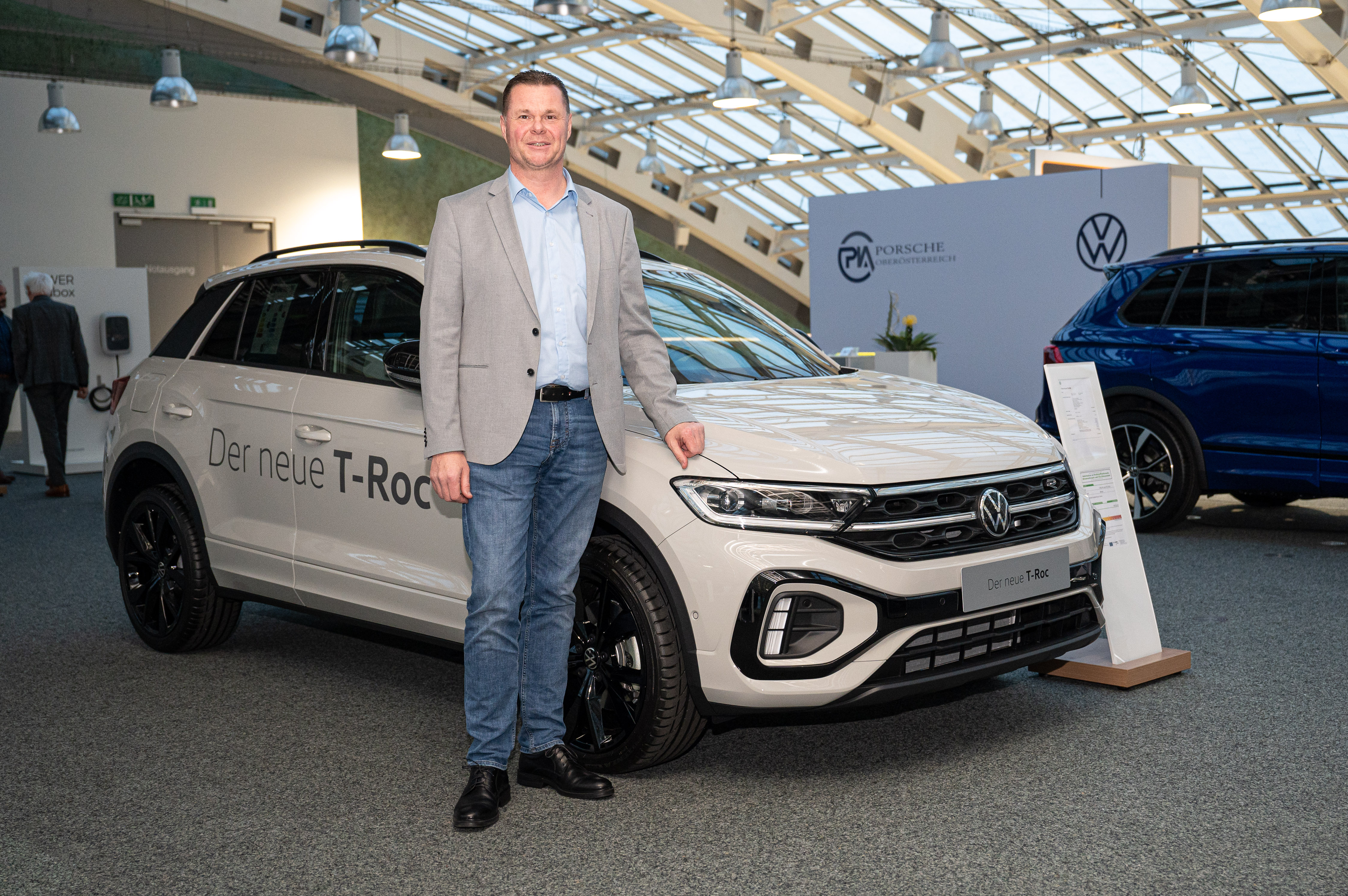 Heinz Quatember, Geschäftsführer Porsche Asten, mit dem nagelneuen VW T-Roc.