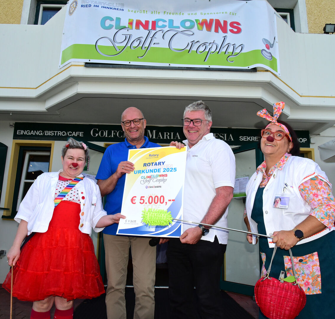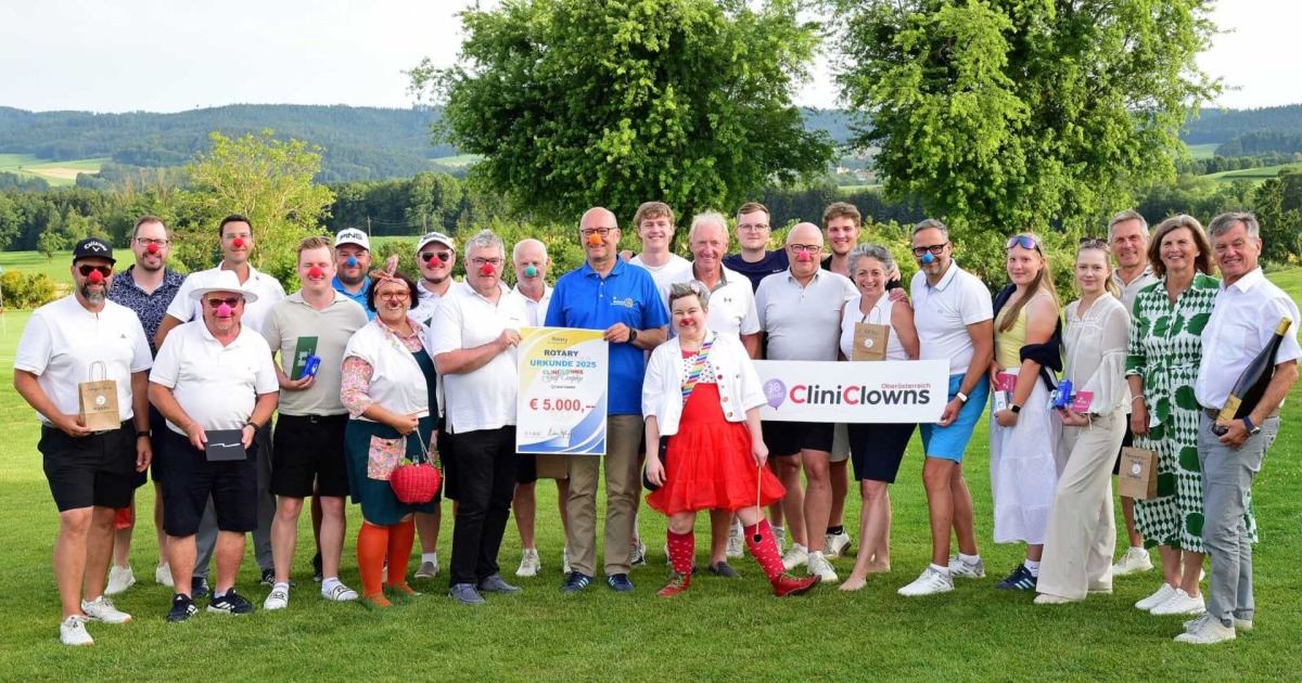 Abseits des Grüns begeisterte eine große Tombola mit mehr als 150 Preisen - charmant präsentiert von Rotary-Vorstandsmitglied Herwig Pernsteiner und CliniClowns-Chef Uwe Marschner samt Clown-Duo. Der schönste Score des Tages: 5.000 Euro für die CliniClowns Oberösterreich - und das bereits zum siebten Mal! Mit dieser Benefizveranstaltung des Rotary Club wird erneute sichergestellt, dass Kindern von Eltern, die unverschuldet in Not geraten sind, weiters dem KinderpalliativNetzwerk, RIKI und vielen anderen ausreichend soziale Unterstützung zuteil wird. Ein abermals gelungenes Turnier, das noch lange nachwirkt - auf dem Platz und im Herzen.