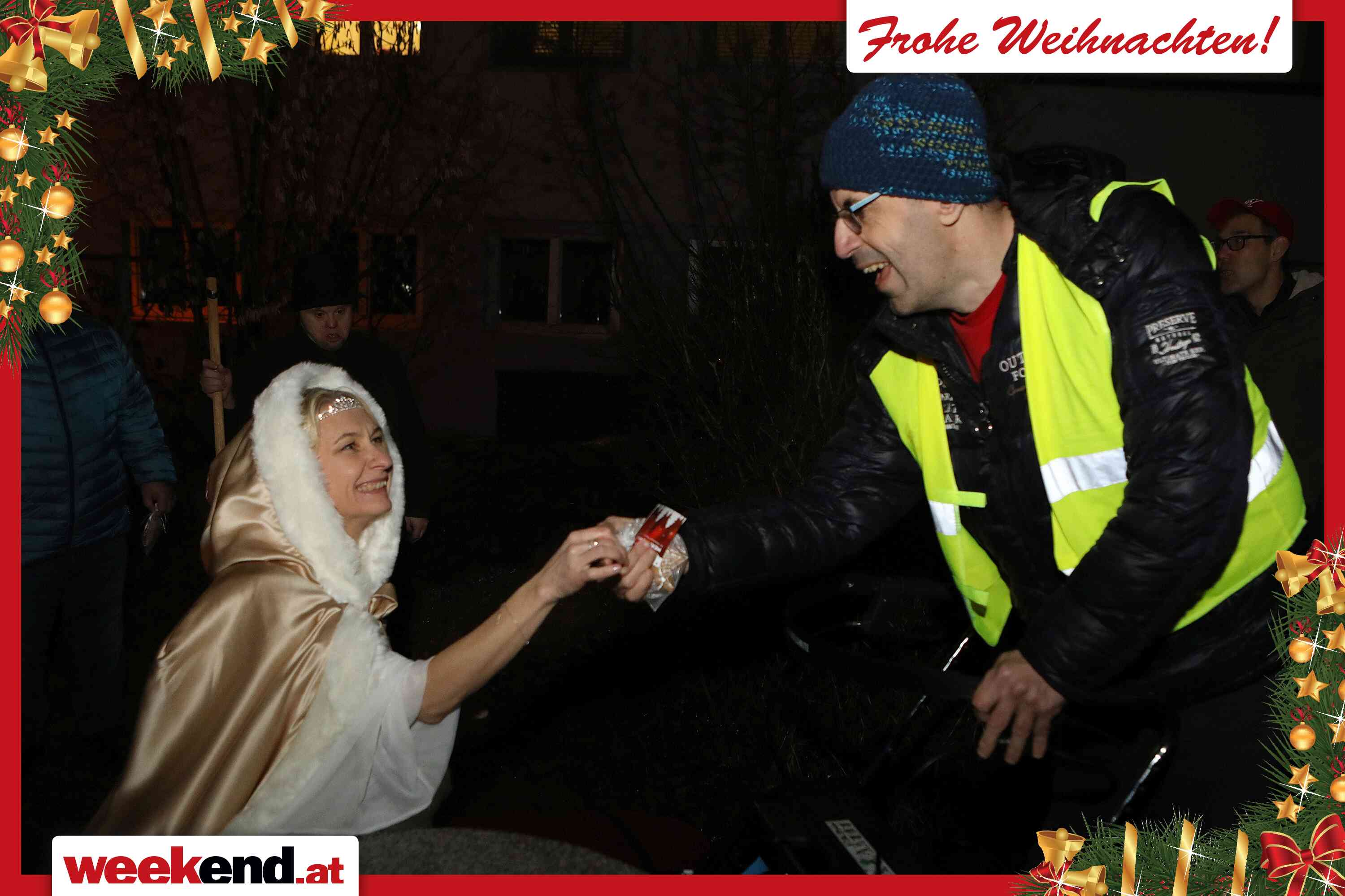 Auch eine Artistengruppe der Caritas-Einrichtung St. Pius hat mitgewirkt, ehe das Weekend-Christkindl an die Anwesenden Lebkuchen-Sterne verteilt hat. Außerdem gab es die Möglichkeit, gemeinsames Fotos anfertigen zu lassen - diese sehen Sie hier. Mit dem festlichen Weekend-Rahmen können die Bilder auch an Angehörige als digitaler Weihnachtsgruß versandt werden!