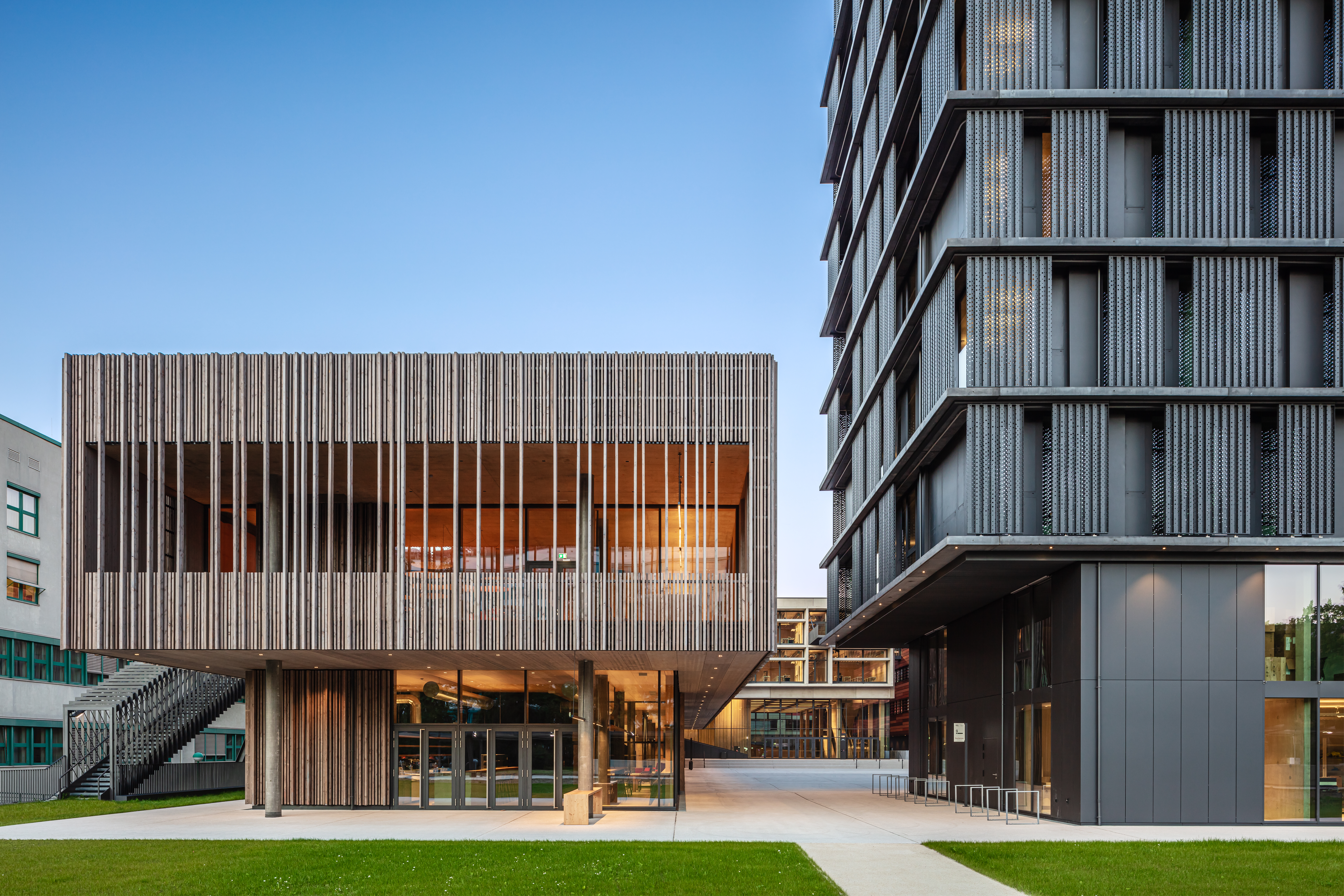 Insgesamt besteht der vom Wiener Archtiekten Peter Lorenz konzipierte Campus aus vier Bauteilen: Neben dem Labor - und Forschungsgebäude, gibt es ein Verwaltungsgebäude mit Büros, eine Bibliothek sowie ein Lehrgebäude mit einer Aula, zwei Hörsälen und 20 Seminarräumen. Eine Bäckerei, eine Bank, ein Café mit großzügiger Terrasse und ein Lebensmittelmarkt sollen dazu beitragen, dass der Campus ein Ort der Begegnung ist.