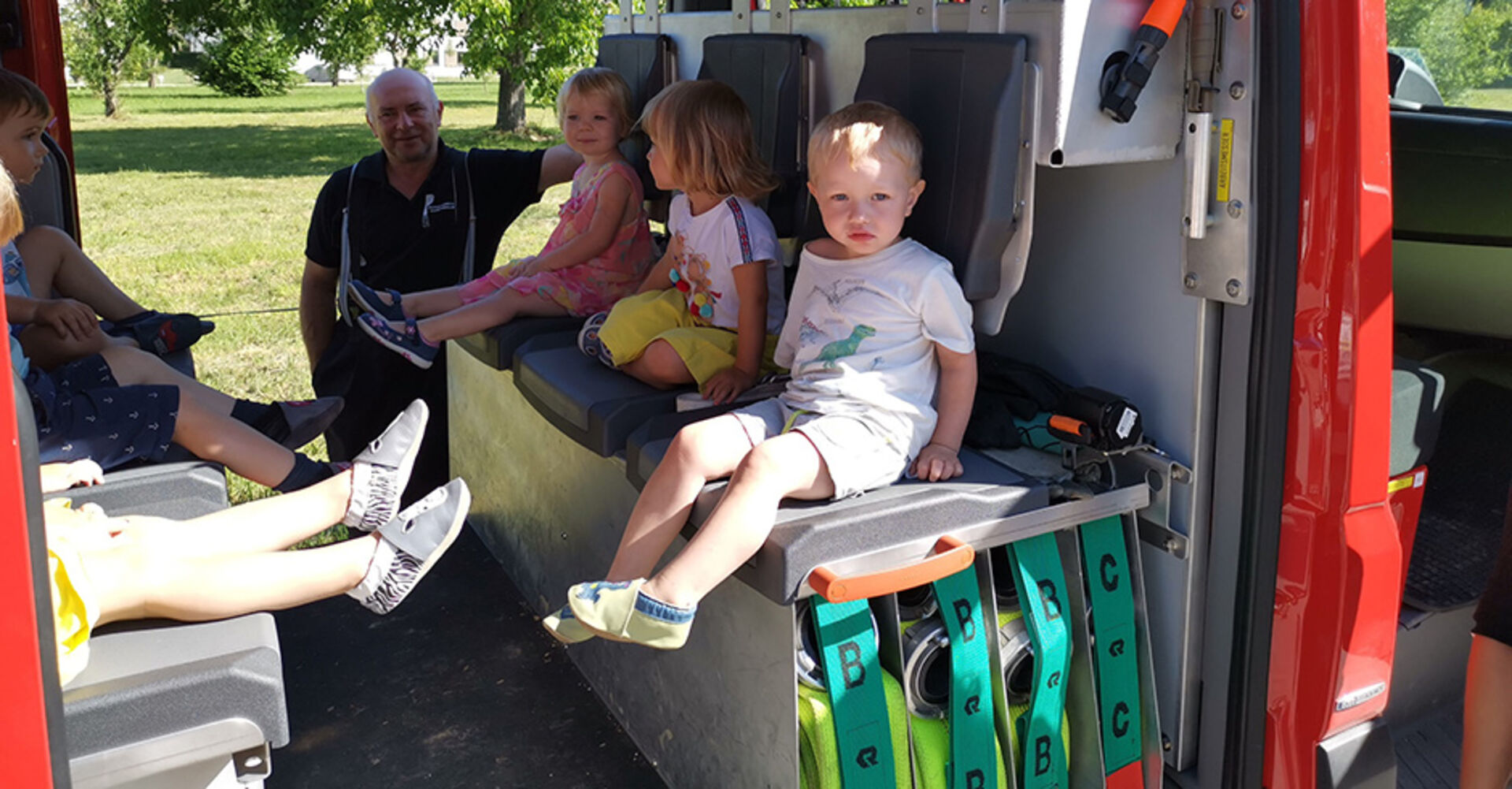 Nachdem alle Kinder aus den Räumen evakuiert wurden, durften sie die Fahrzeuge unter fachmännischer Aufsicht erkunden und alle Fragen wurden beantwortet. Die Kinder hatten sichtlich viel Spaß dabei und zeigten großes Interesse als es darum ging, in die Welt der Feuerwehr einzutauchen.