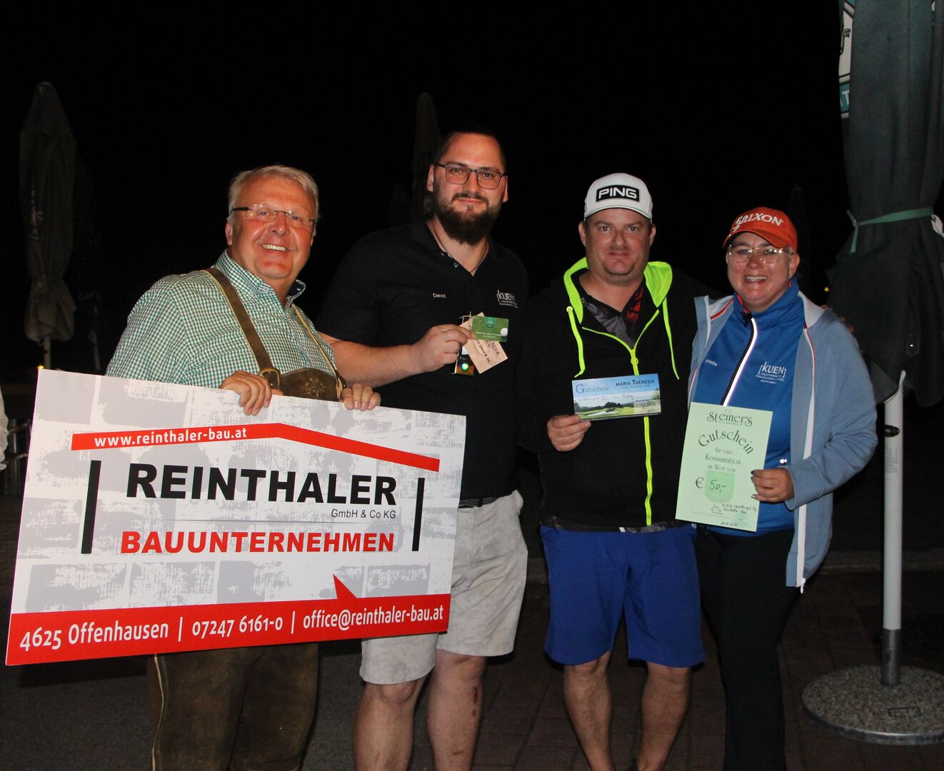 Gigantisches Finale der 9-Loch Challenge by Reinthaler Bau am 28. September im Golfclub Maria Theresia Haag/H.: Unter den 68 TeilnehmerInnen holten sich Johannes Baumgartner (18 Brutto) und Walter Krausmann (26 Netto) die Tagessiege.