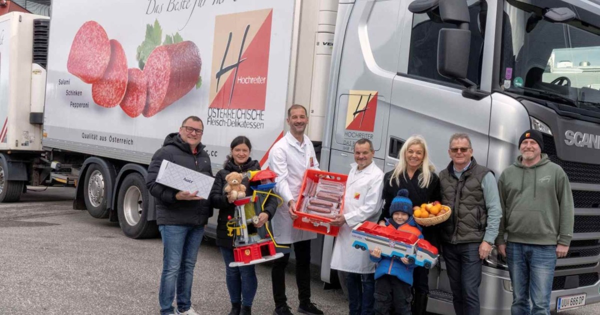 "Mit unserem Transport sorgen wir dafür, dass es auch bei den Ärmsten zumindest ein bisschen Weihnachten wird. Ich bedanke mich bei allen Partnerfirmen, der Leonfeldner Bevölkerung und bei meinen Mitarbeitern für ihre Unterstützung, dank der wir wirksam und effizient helfen können", so Firmenchef Wolfgang Hochreiter, der selbst als Spender großzügig voranging: Sein Unternehmen stellte nicht nur mehrere Paletten Salami und Wurstwaren zur Verfügung, sondern übernahm mit einem firmeneigenen Lkw-Zug auch den Transport der Hilfsgüter.