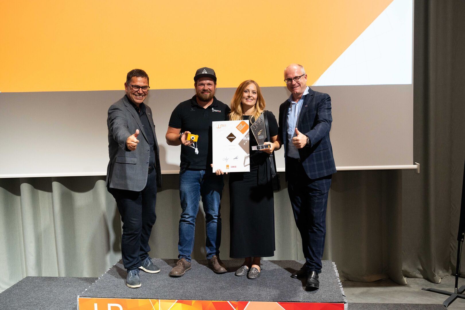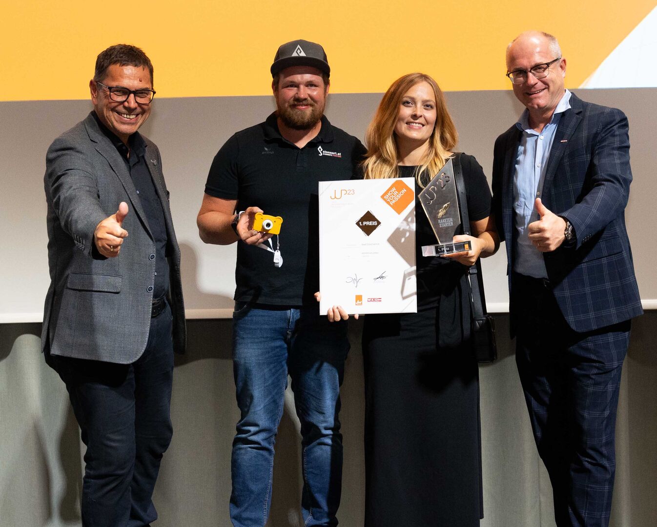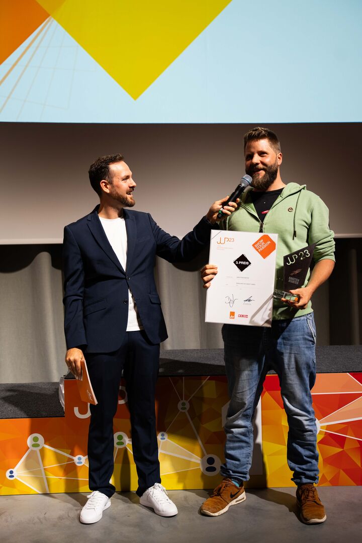 In dieser Kategorie werden Gründerinnen und Gründer ausgezeichnet, die mit ihren Vorhaben überraschen, inspirieren und den Weg in die Zukunft weisen. Der Sieg ging an Lisa Berndorfer-Lechner aus Grieskirchen mit ihrer Kinderkamera "Hoppstar" vor Dominik Maier (Maier Dach, Vorchdorf) und der Manufactor Greif GmbH (Bitter & Friends) aus Wels.