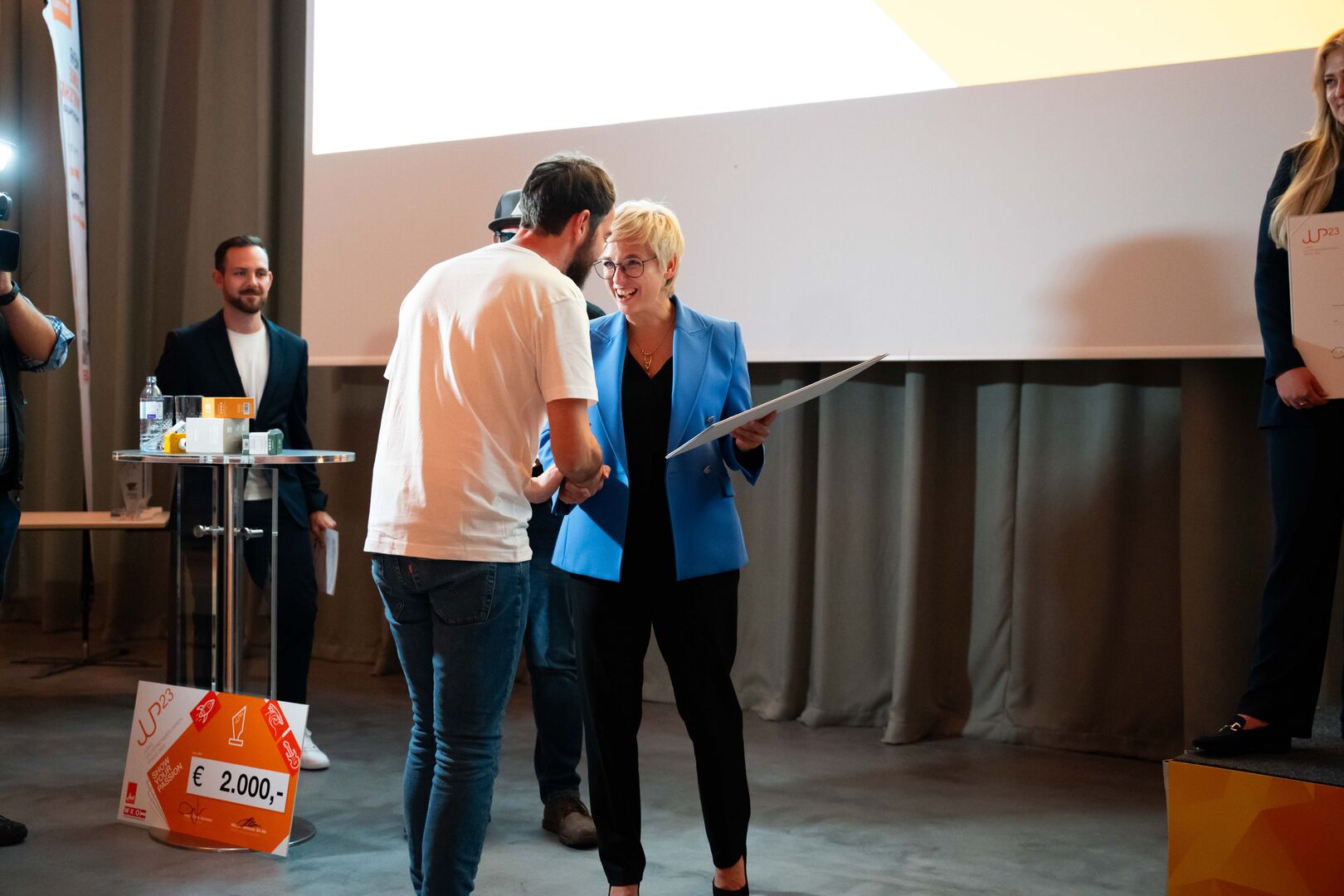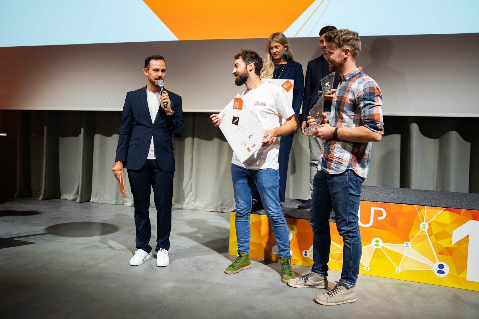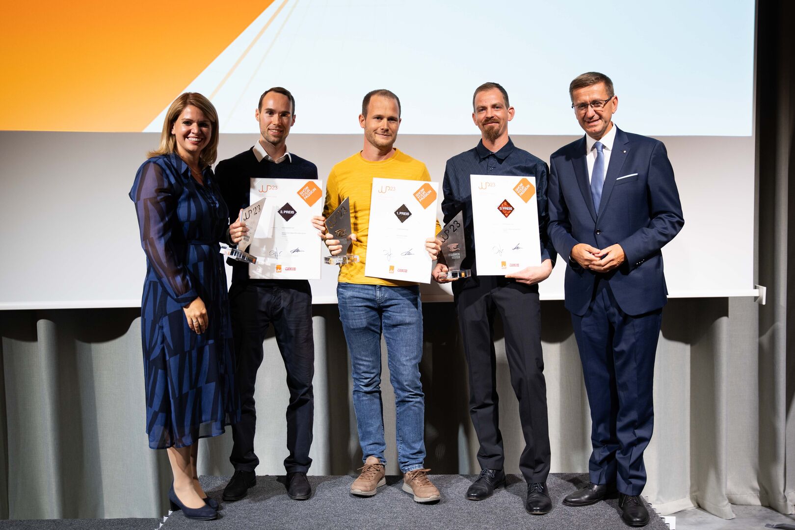 In dieser Kategorie werden Gründerinnen und Gründer ausgezeichnet, die mit ihren Vorhaben überraschen, inspirieren und den Weg in die Zukunft weisen. Der Sieg ging an Lisa Berndorfer-Lechner aus Grieskirchen mit ihrer Kinderkamera "Hoppstar" vor Dominik Maier (Maier Dach, Vorchdorf) und der Manufactor Greif GmbH (Bitter & Friends) aus Wels.